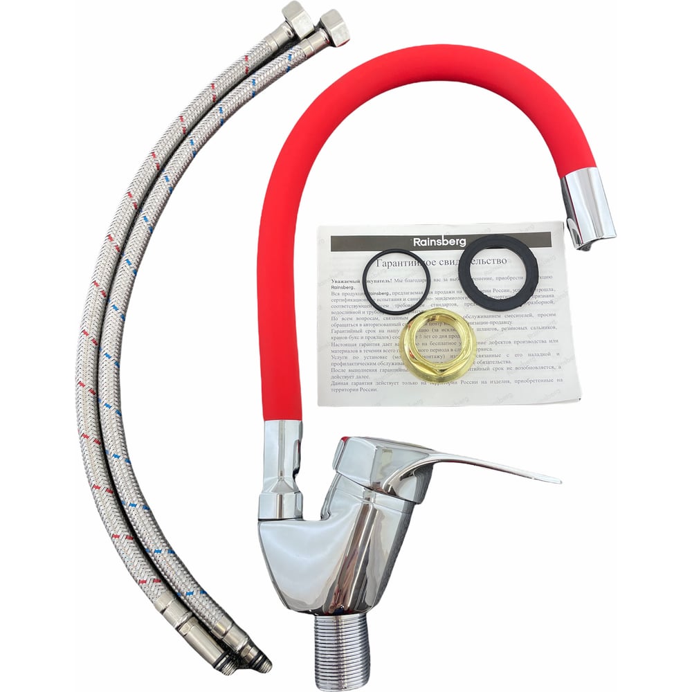 Смеситель для кухни Rainsberg с гибким силиконовым изливом, красный R3193F-8