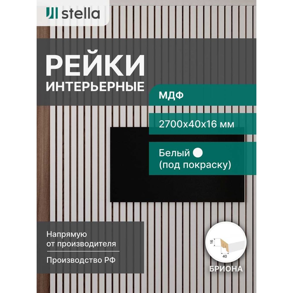 Интерьерная рейка STELLA Бриона МДФ, 16x40x2700 мм, белый, упаковка 8 шт. ЦБ-00007683