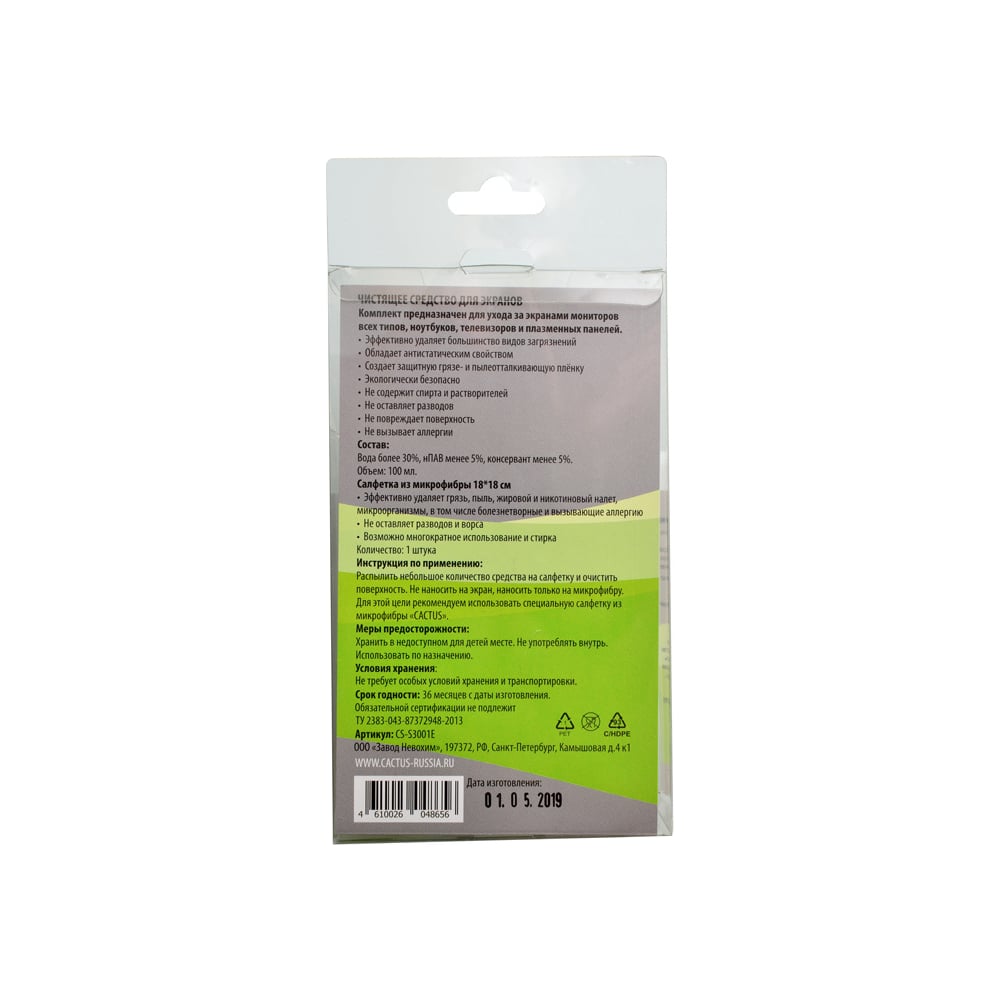 Чистящий набор салфетка/спрей Cactus для экранов и оптики, 18x18 см, 100 мл, 1 шт. CS-S3001E 1118420