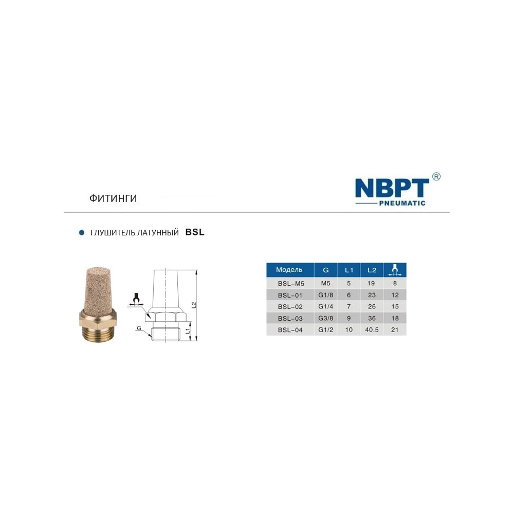 Фитинг-глушитель (пневмоглушитель) bsl - M5 NBPT 58374