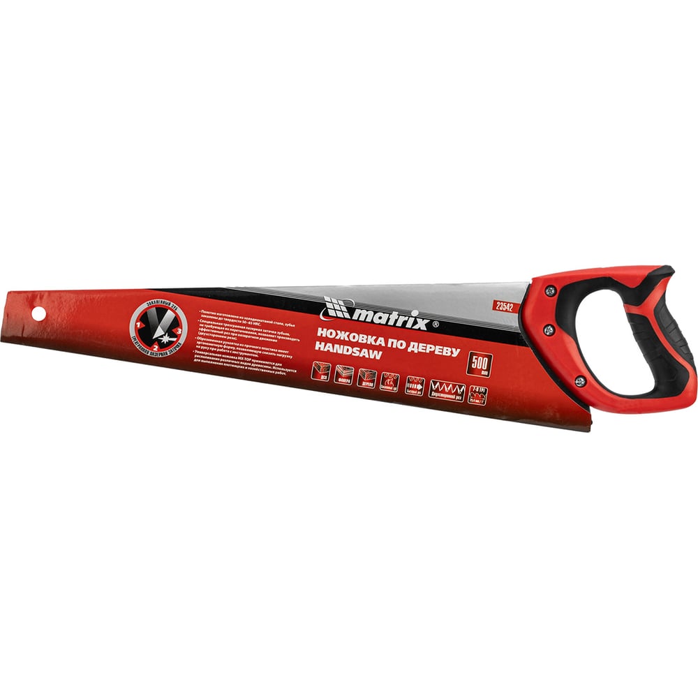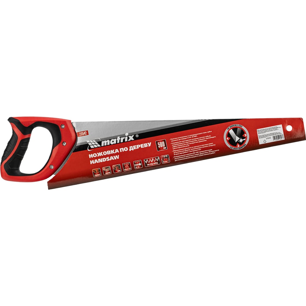 Ножовка по дереву MATRIX 500 мм, 7 - 8 TPI, зуб - 3D, каленый зуб, двухкомпонентная рукоятка 23542