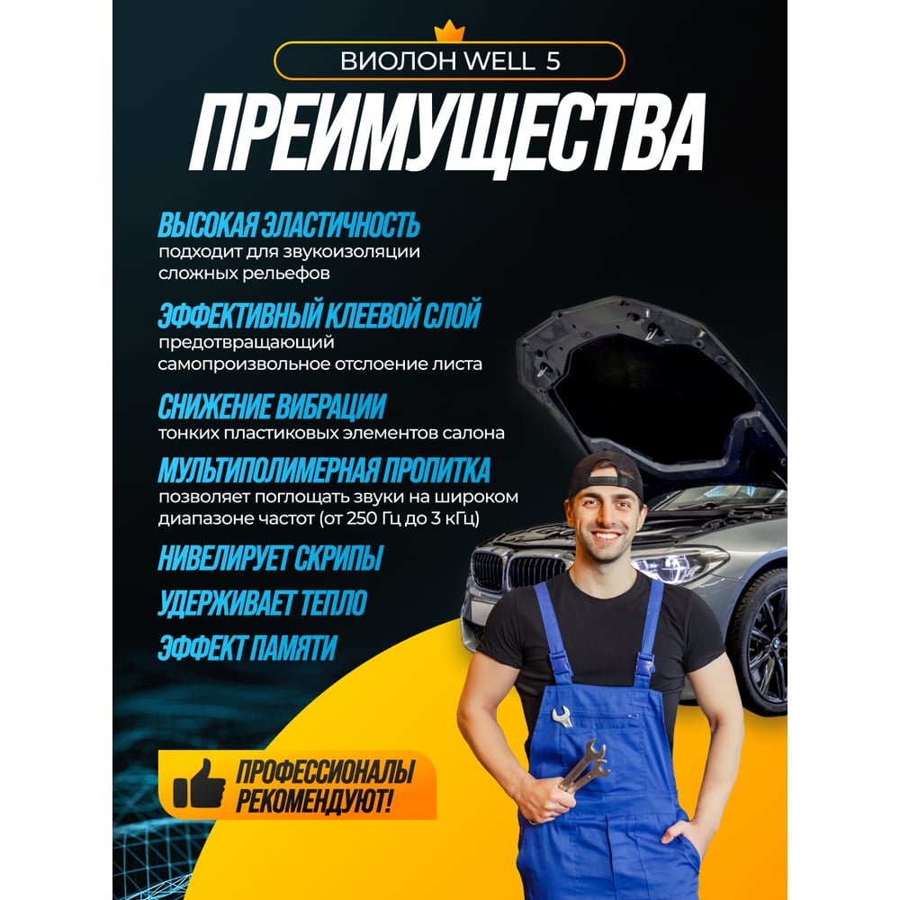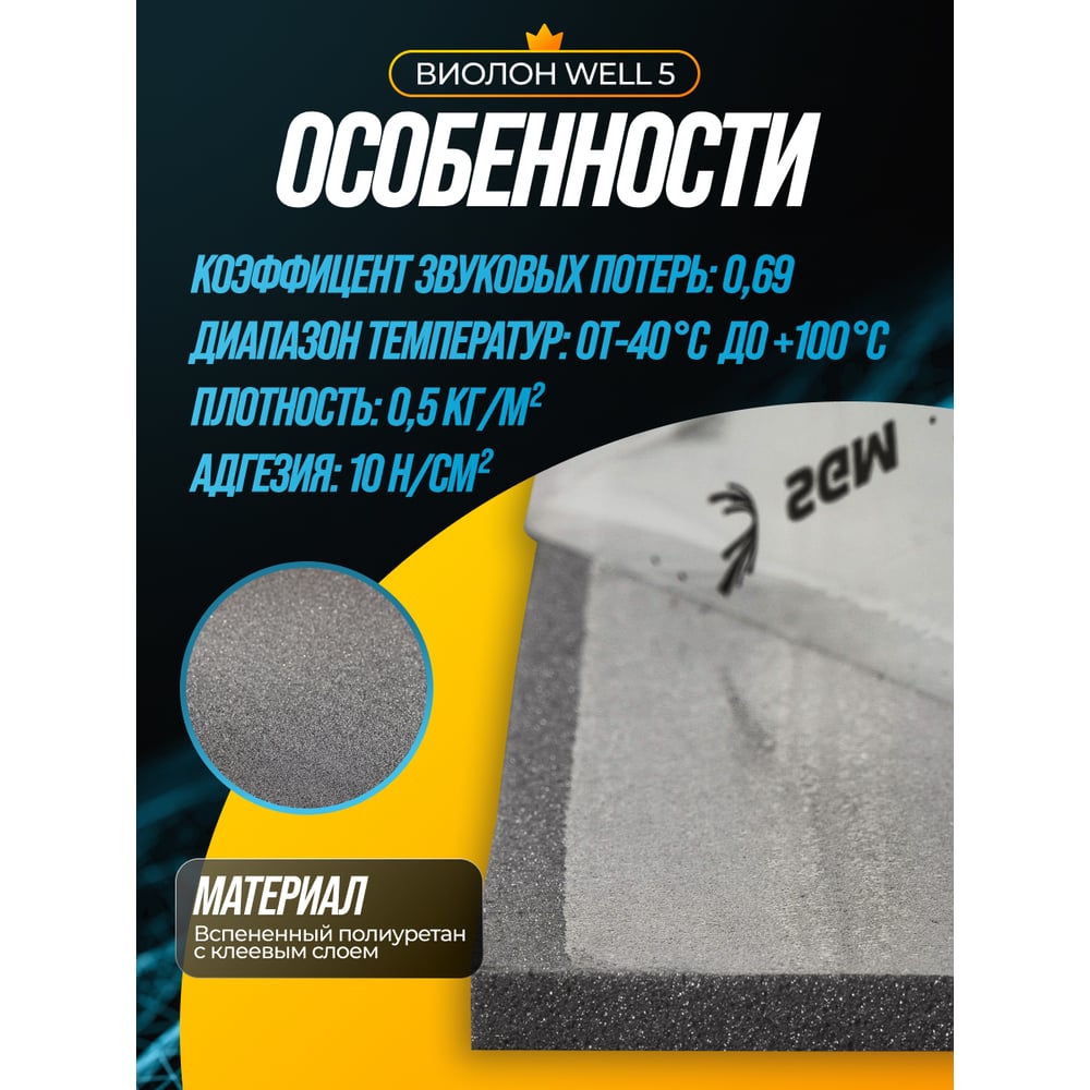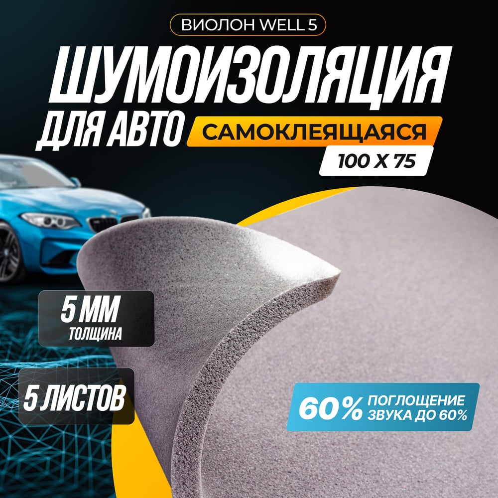 Шумоизоляция SGM Виолон Well 5 ( Виолон ВЭЛ 5), акустический поролон самоклеящийся 5 листов SGM.WELL.5.5.L