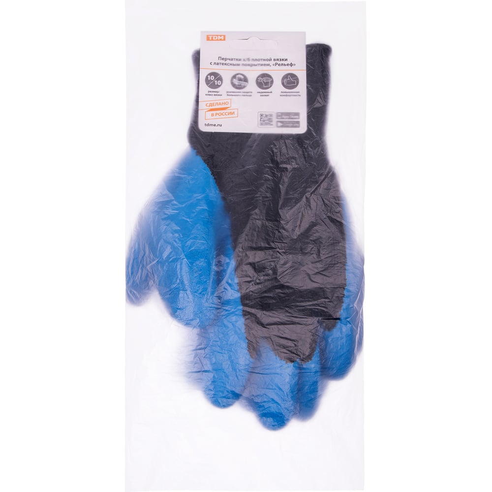 Перчатки хлопчатобумажные плотной вязки с латексным покрытием TDM ELECTRIC черные, размер 10, 1 пара, "Рельеф" SQ1016-0214