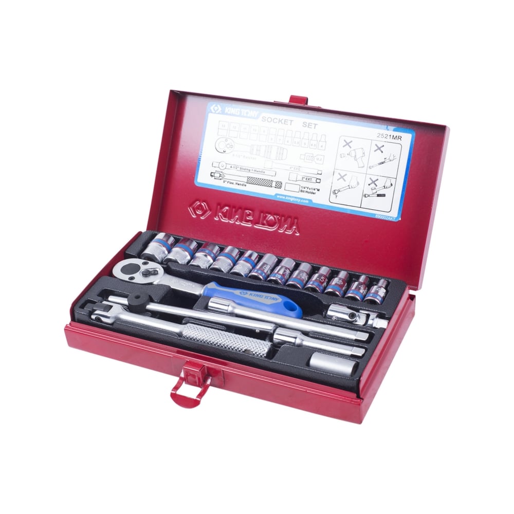 Набор торцевых головок с принадлежностями (1/4", шестигранные, 4-13 мм, 19 предметов) KING TONY 2521MR