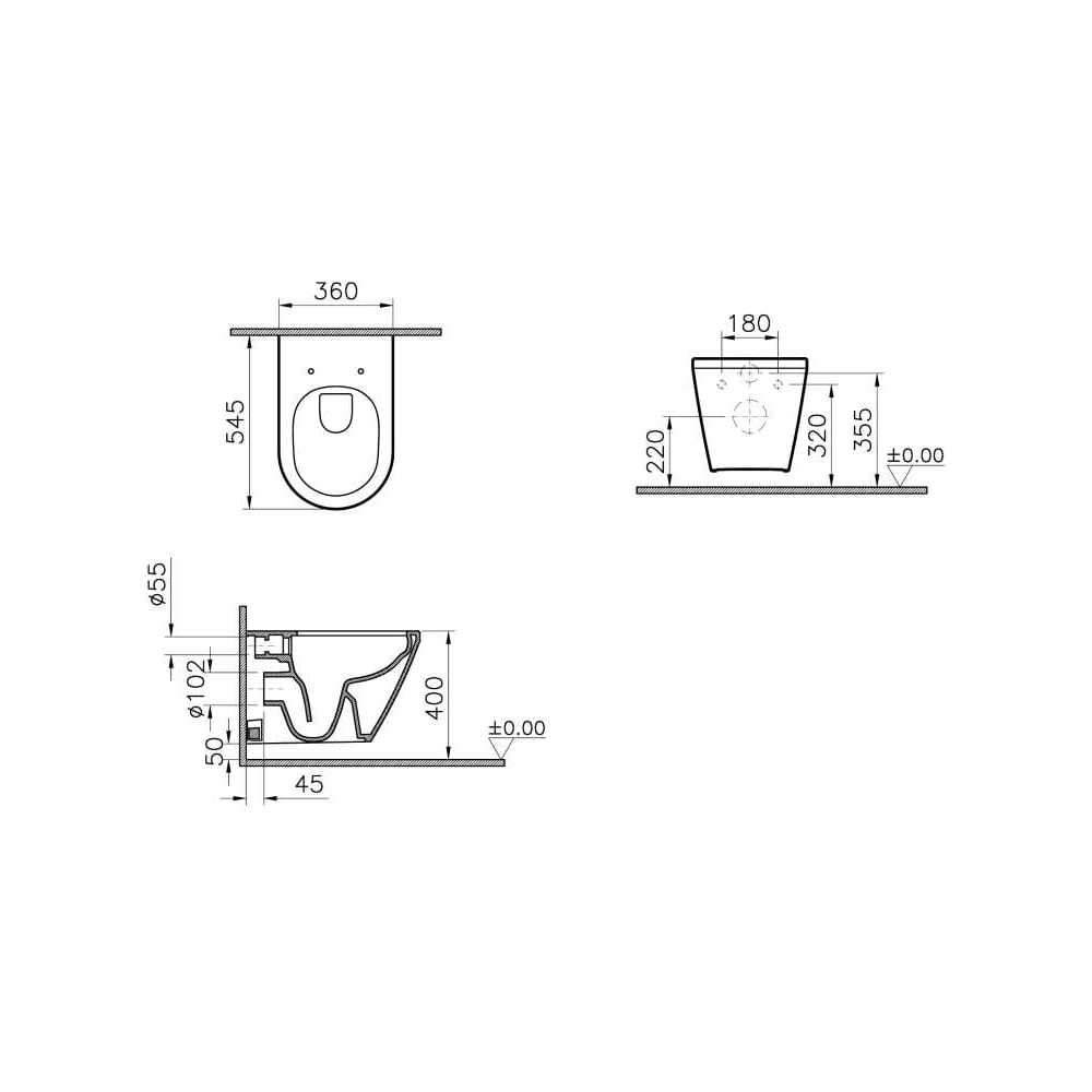 Подвесной унитаз Vitra Integra Round 54 см, безободковый 7041B003-0075