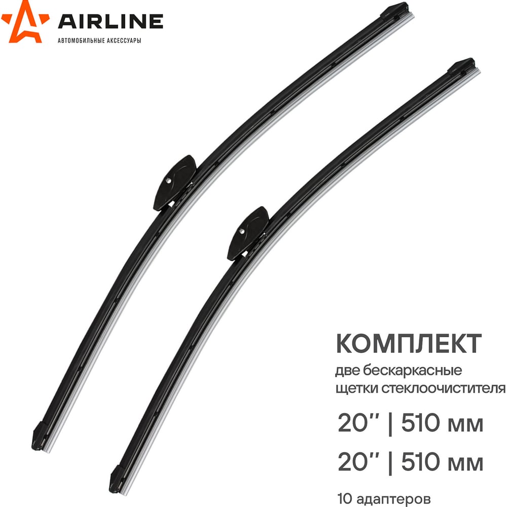 Бескаркасная щетка стеклоочистителя (510 мм, 20", комплект) для а/м LADA ВАЗ 2113-15 (01-13), 2110-12 (96-09), Priora (06-18), Chevrolet Niva Airline AWB-BK-510K
