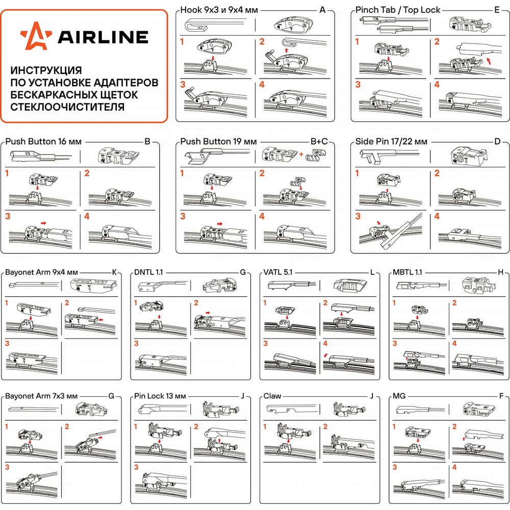 Бескаркасная щетка стеклоочистителя Airline AWB-BK-510K