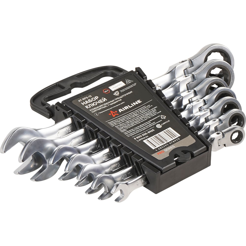 Набор комбинированных трещоточных шарнирных ключей 7 предметов 8,10,12,13,14,17,19мм пластиковый пенал Airline AT-RFS-13