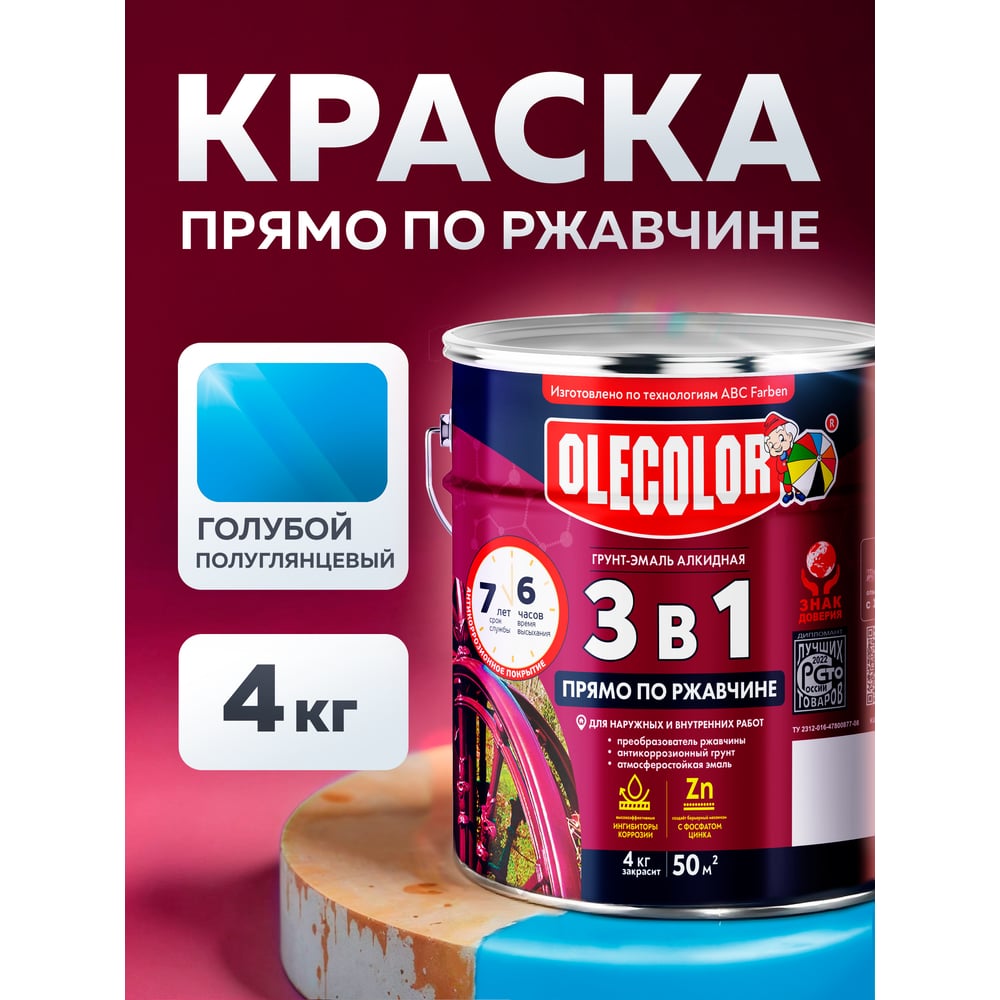 Грунт-эмаль по ржавчине OLECOLOR голубой, 4 кг 4300005948