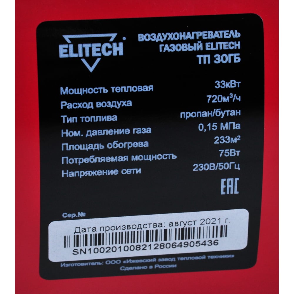 Тепловая пушка Elitech ТП 30ГБ 177655