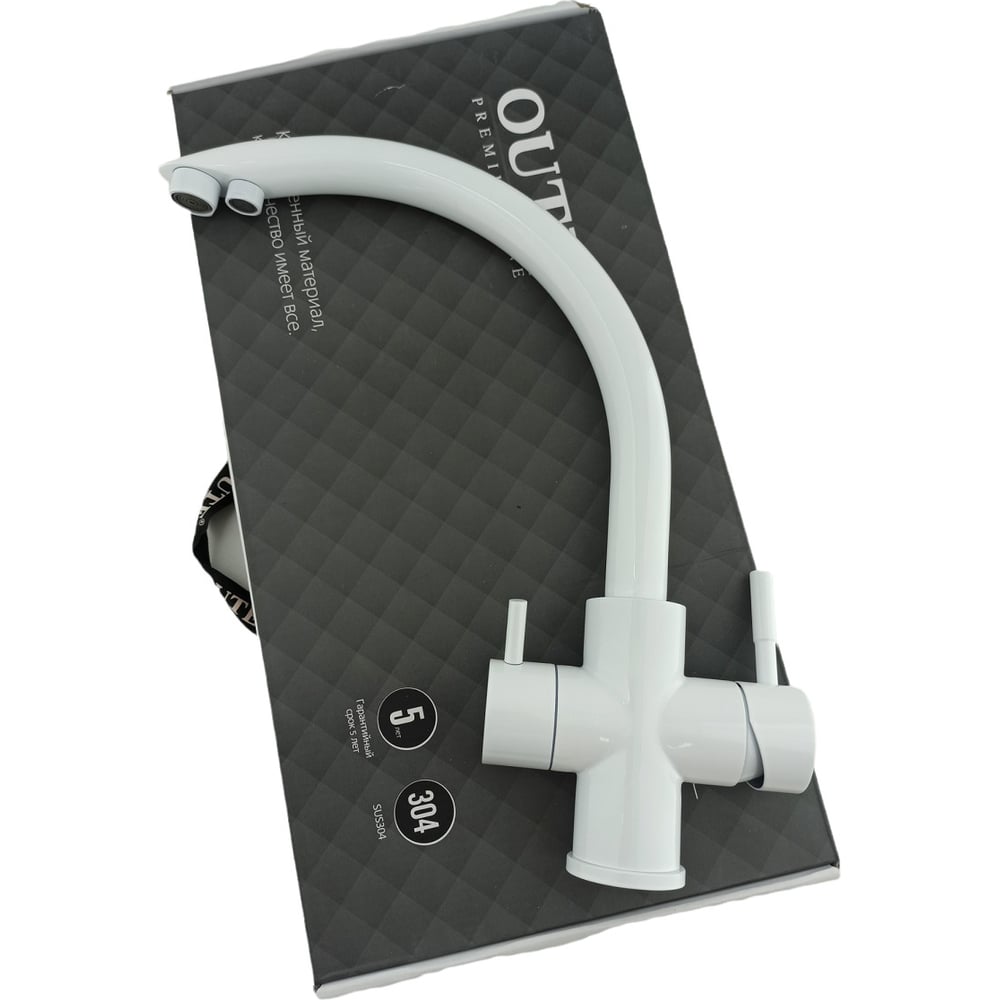 Смеситель для кухни OUTE 340 мм, белый, однорычажный, с отдельным выходом под фильтр, с аэратором T60103BK