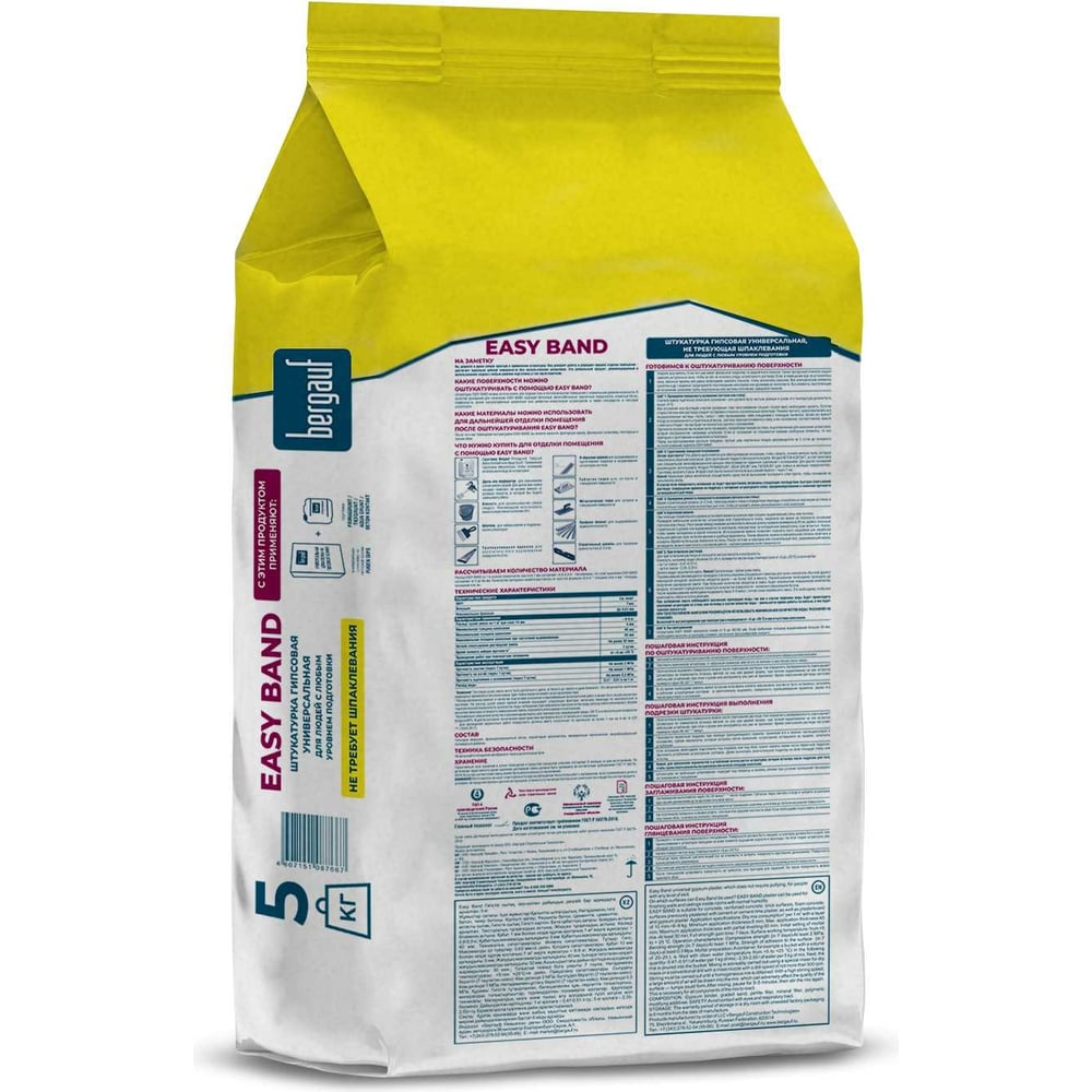 Гипсовая штукатурка для людей с любым уровнем подготовки Bergauf Easy Band 5 кг 49976