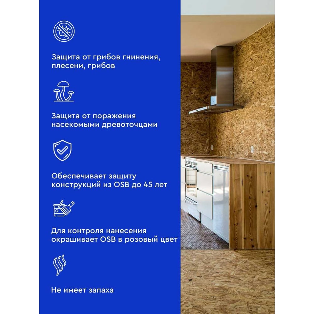 Антисептик для защиты OSB плит от синевы и плесени для наружных и внутренних работ MASTER FARBE 4631168416608