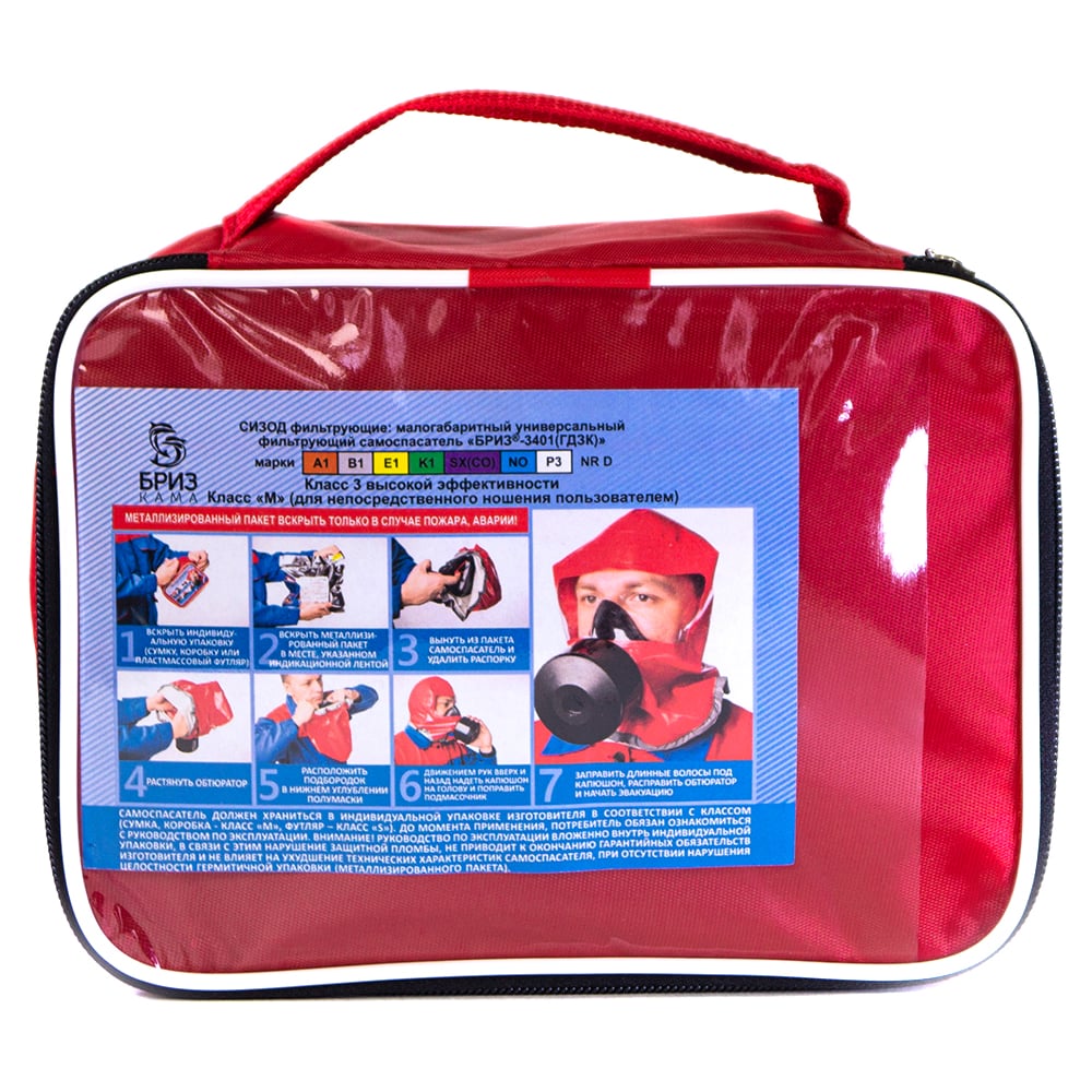 Малогабаритный универсальный фильтрующий самоспасатель БРИЗ 3401 ГДЗК сумка 502403001