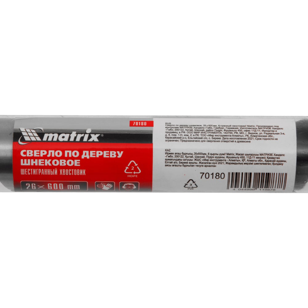 Сверло шнековое по дереву (26х600 мм) MATRIX 70180