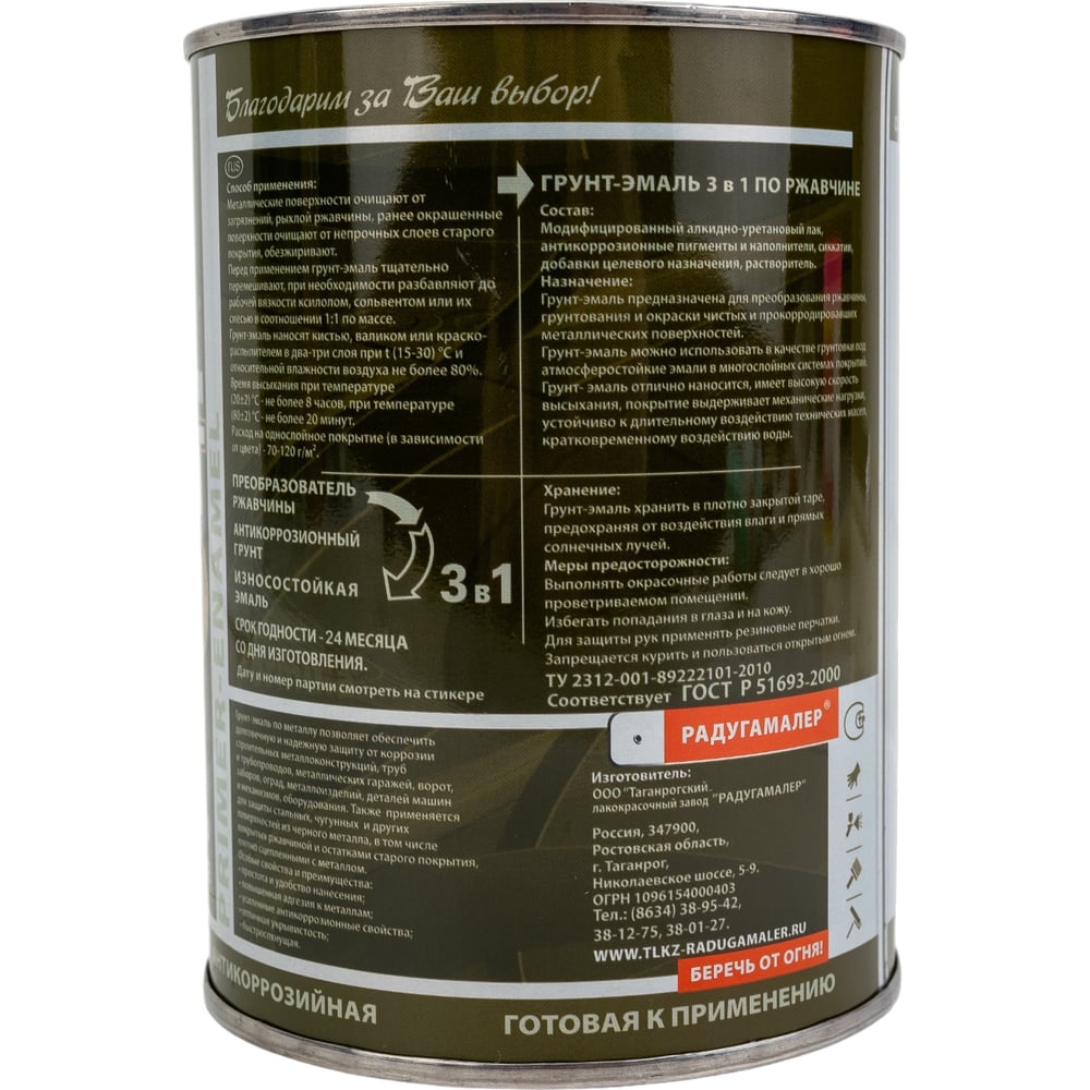 | Вид тары | металлическая банка |