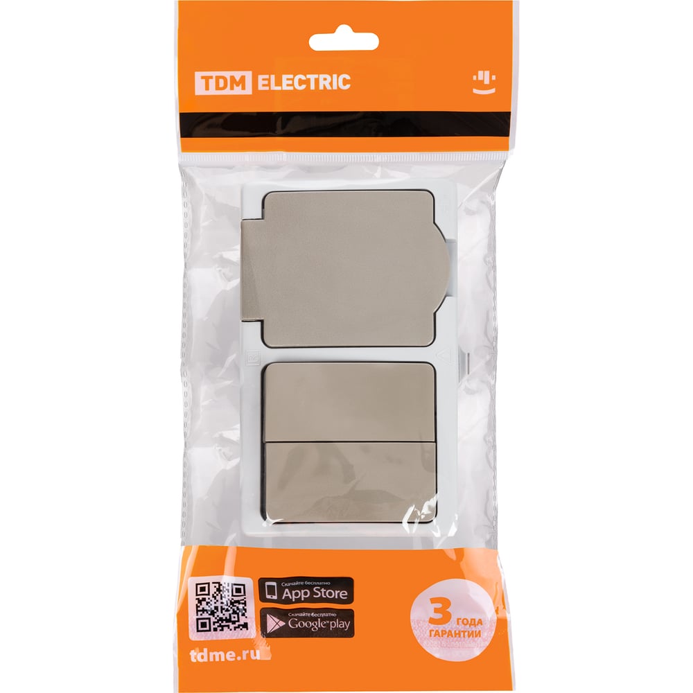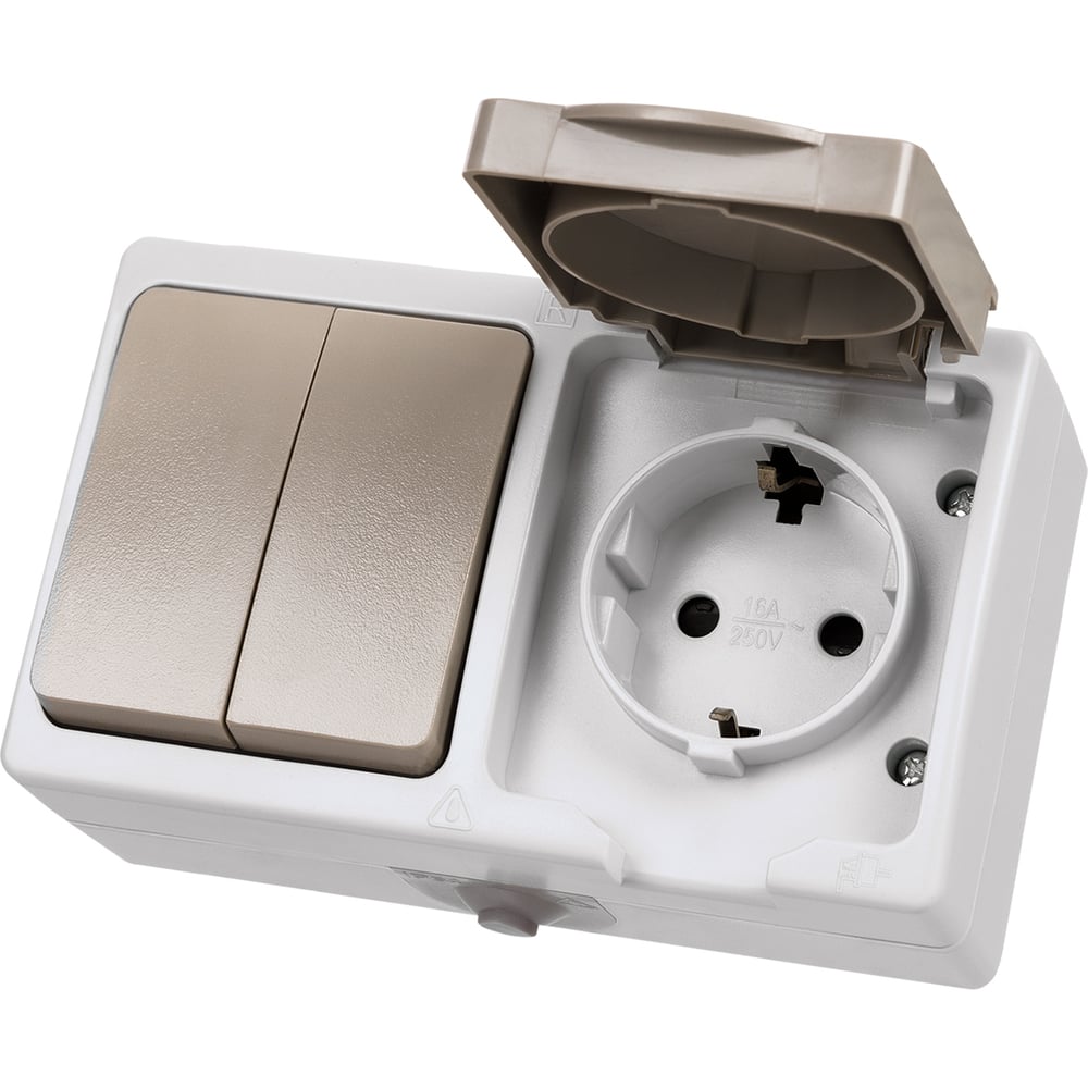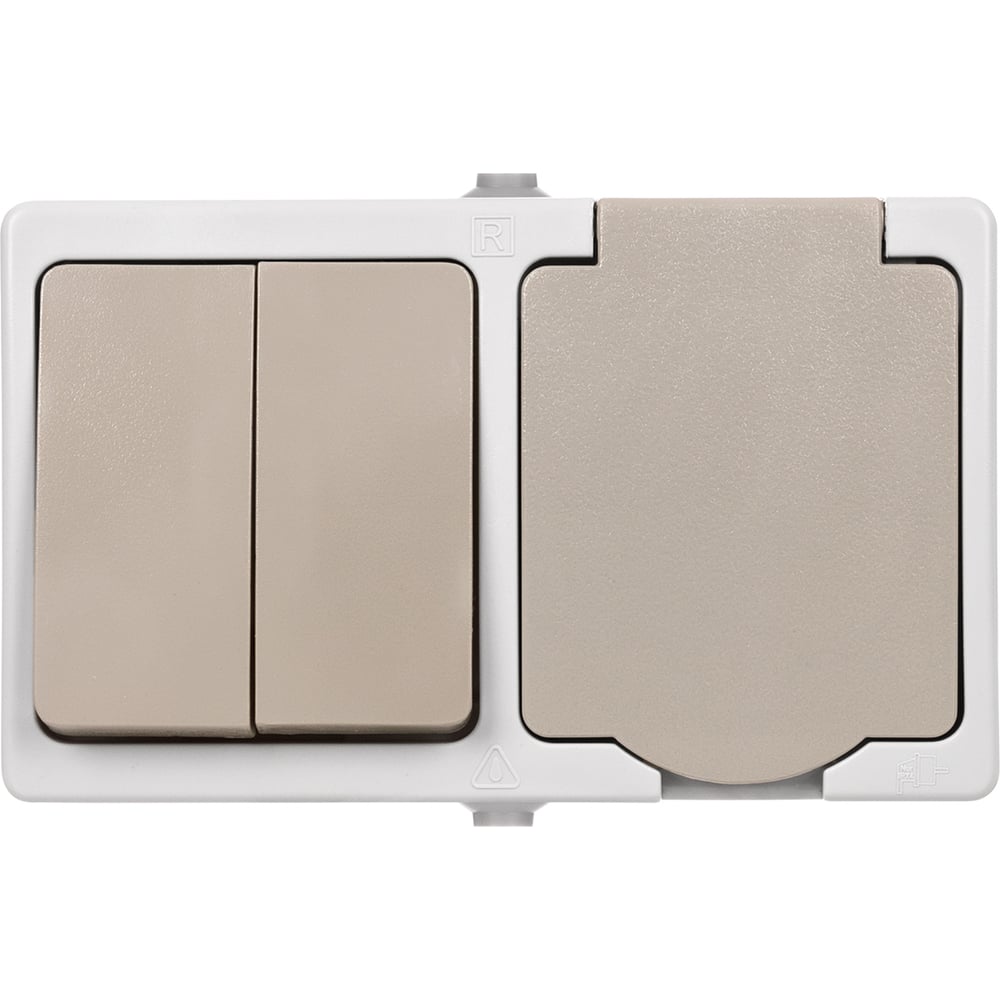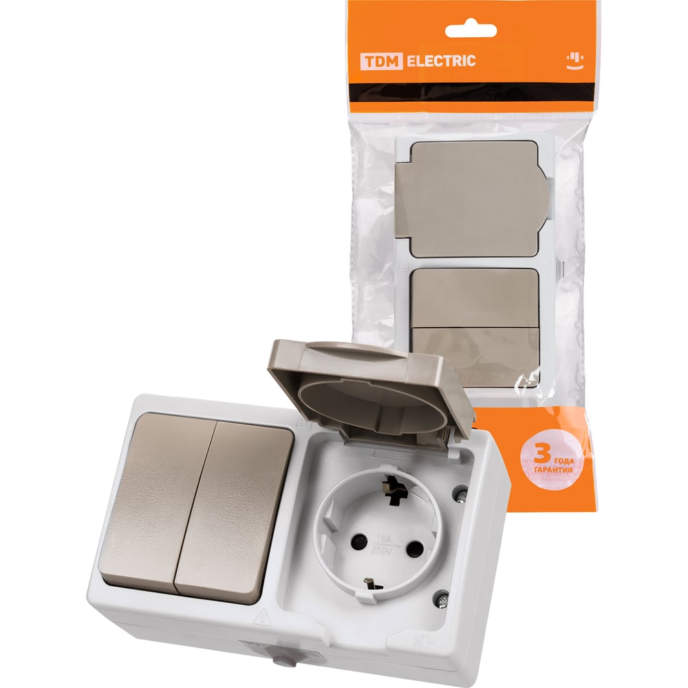 Блок комбинированный TDM ELECTRIC горизонтальный выключатель 2-кл. + розетка 2П+З с з/ш БКВР IP54 "Вуокса" SQ1803-0012