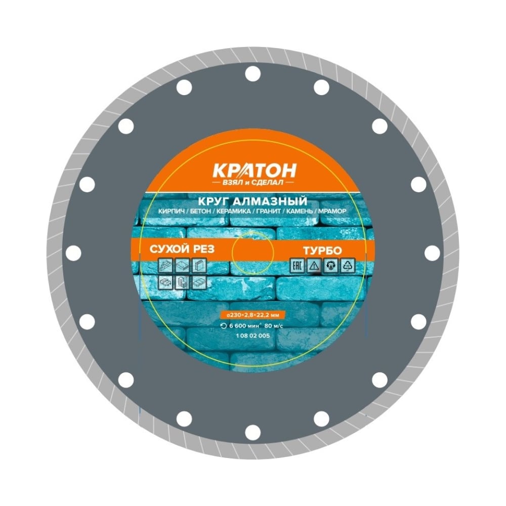 Круг алмазный сегментный (230х22.2х2.4 мм) Кратон 1 08 02 005