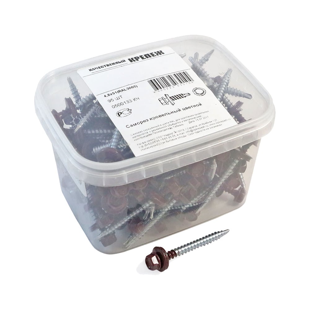 Кровельный саморез Качественный КРЕПЕЖ красное вино RAL 3005, 4.8х51 мм, 95 шт 0500133 КЧ