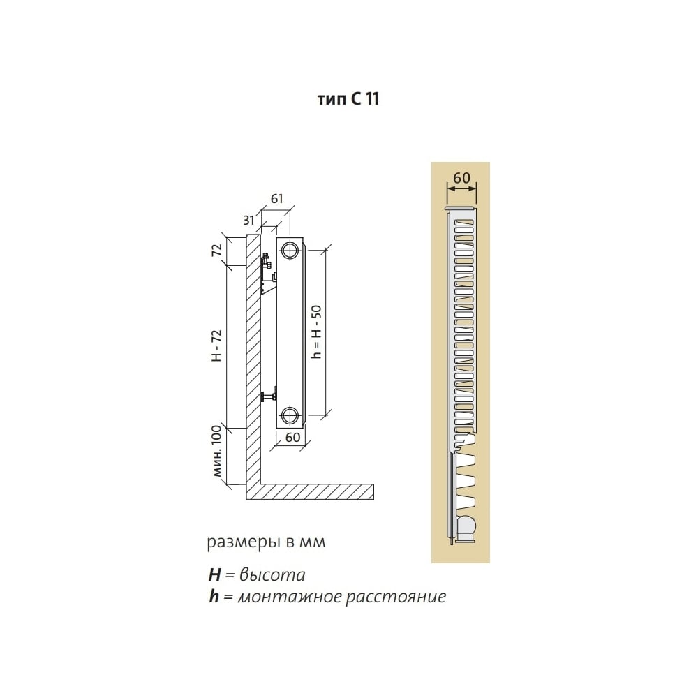 Материал сталь Цвет белый Вид панельные Тип 11 Класс товара Бытовой Тип установки настенный Вес нетто 9.3 кг Тип подключения боковое Серия Compact Глубина 60 мм Давление 10 бар Площадь обогрева 5.2 м² Испытательное давление 13 бар Max температура 110 °С Теплоотдача 656 Вт Мах рабочее давление 1 МПа Высота радиаторов 500 мм Длина радиаторов 600 мм Объем воды в секции 1.8 л Межосевое расстояние 45 см Расположение секций вертикальное Толщина листа панели радиаторов 1.25 мм Шаг вертикальных водопроводных труб 33 1/3 мм Обработка поверхностей KTL II – катофорез второго поколения Тепловая мощность при t 75/65°C 521 Вт