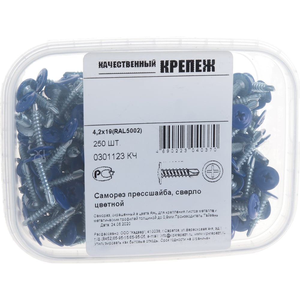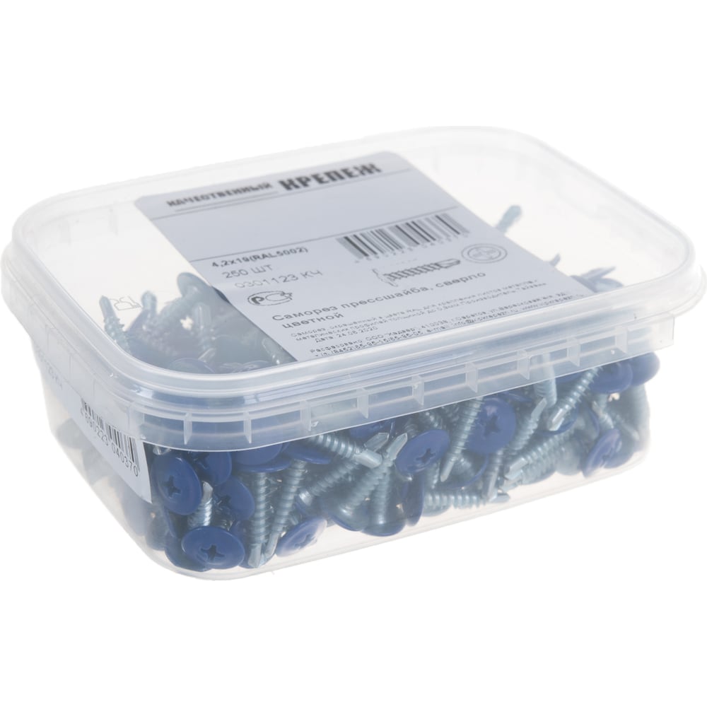 Прессшайба Качественный КРЕПЕЖ 4.2х19 мм, ультрамарин RAL 5002, сверло, 250 шт 0301123 КЧ