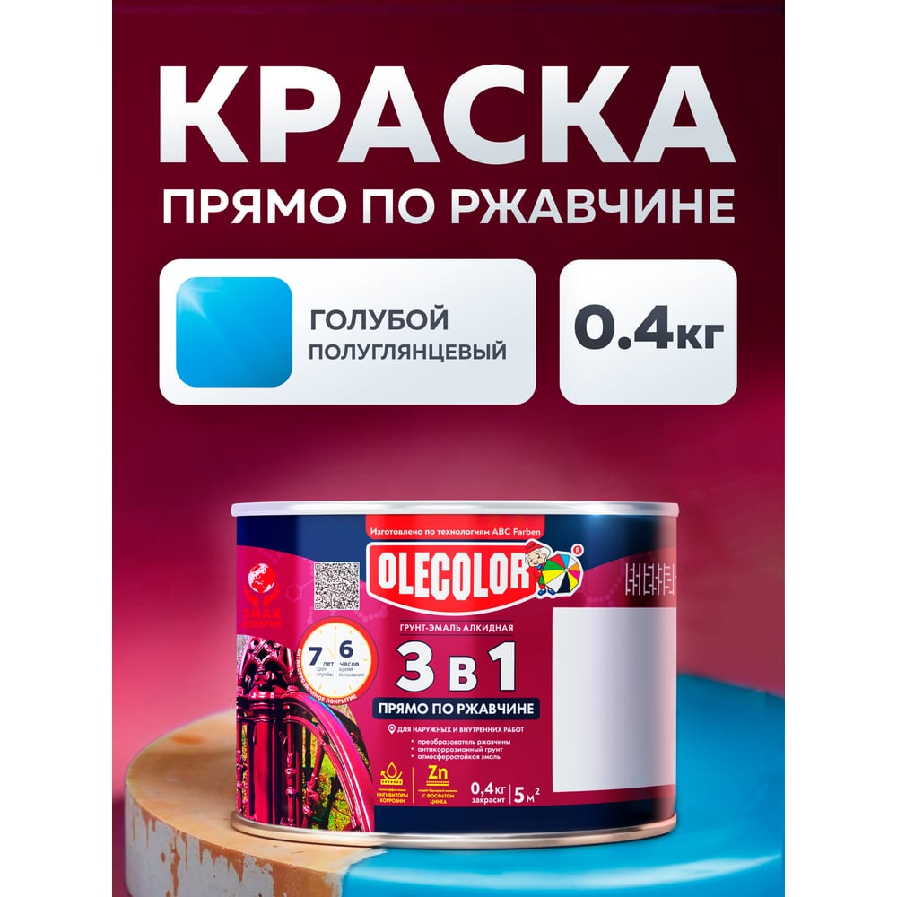 Грунт-эмаль по ржавчине OLECOLOR голубой, 0.4 кг 4300009577