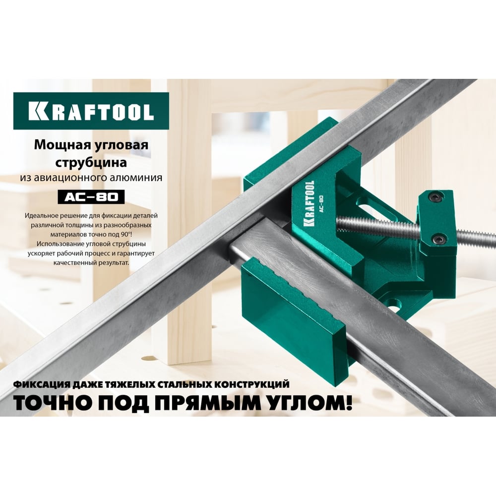 Угловая струбцина KRAFTOOL AC-80 алюминиевая, глубина зажима 70 мм 32202