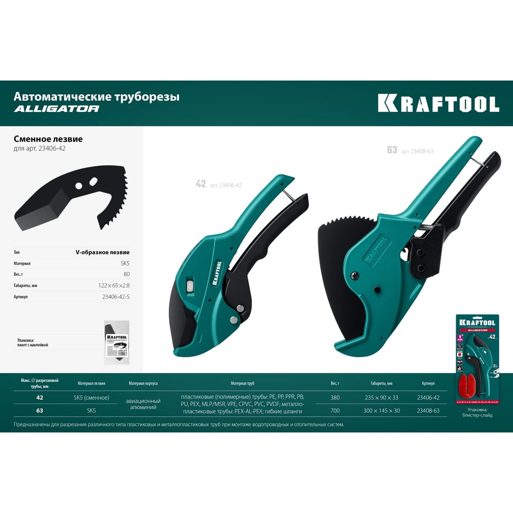 Автоматический труборез по пластиковым трубам KRAFTOOL Alligator-42 23406-42_z01