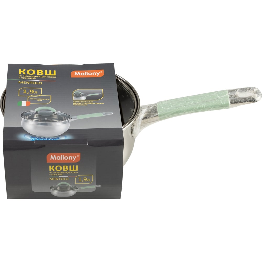 Ковш Mallony MENTOLO 1.9 л, из нержавеющей стали с крышкой, ручки с силиконом 103575