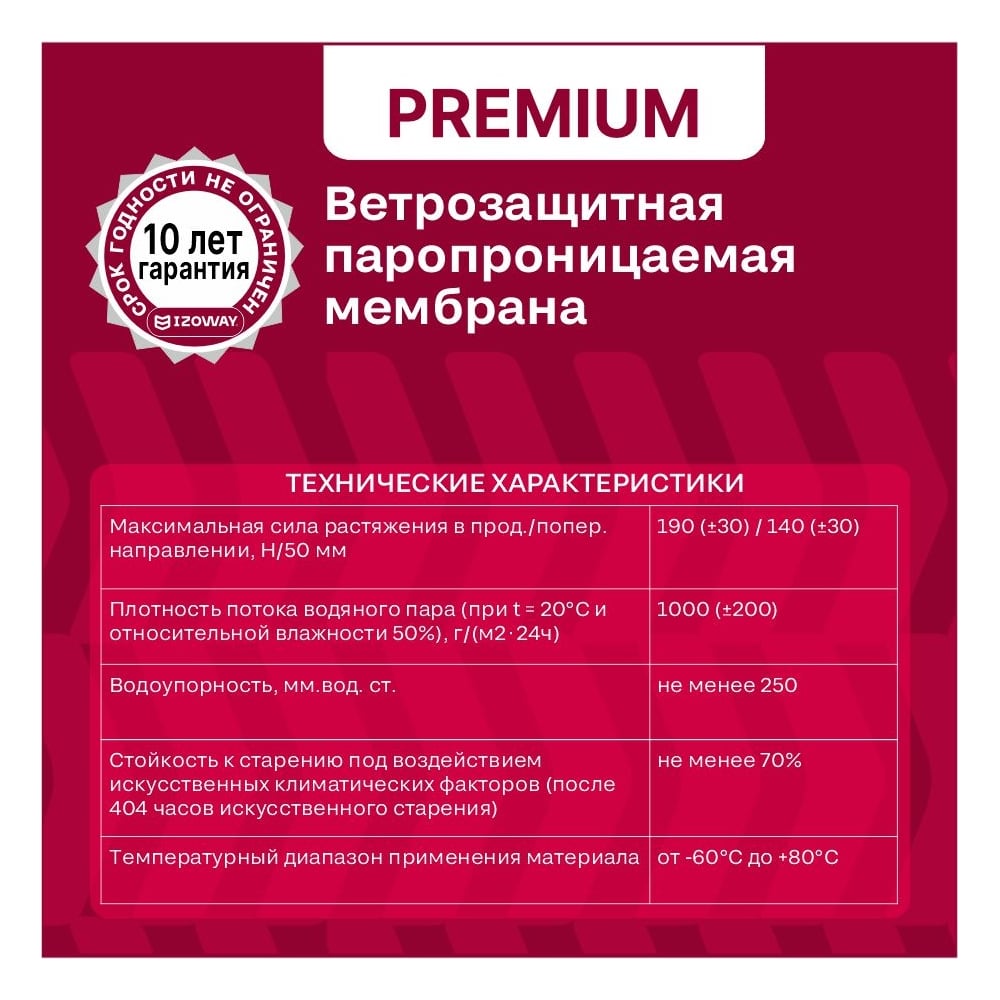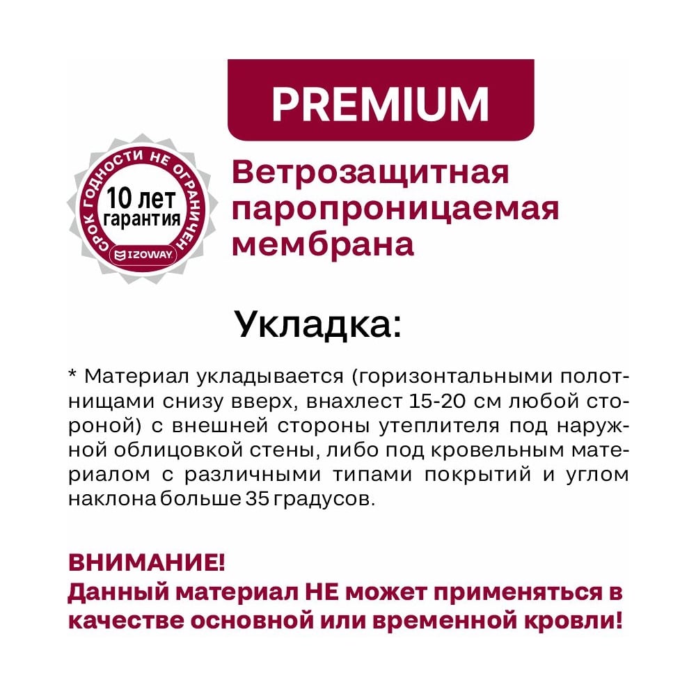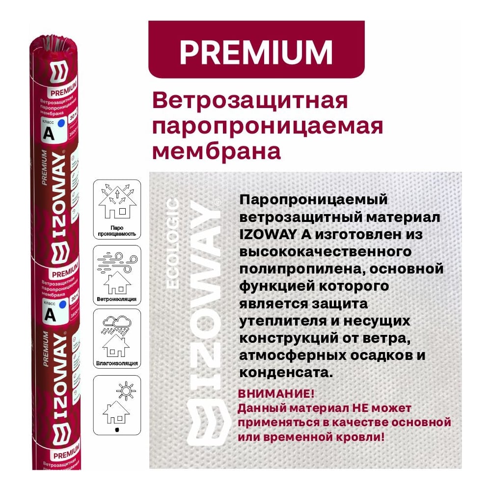 Мембрана ветрозащитная паропроницаемая Izoway Premium A 70 кв.м 24192