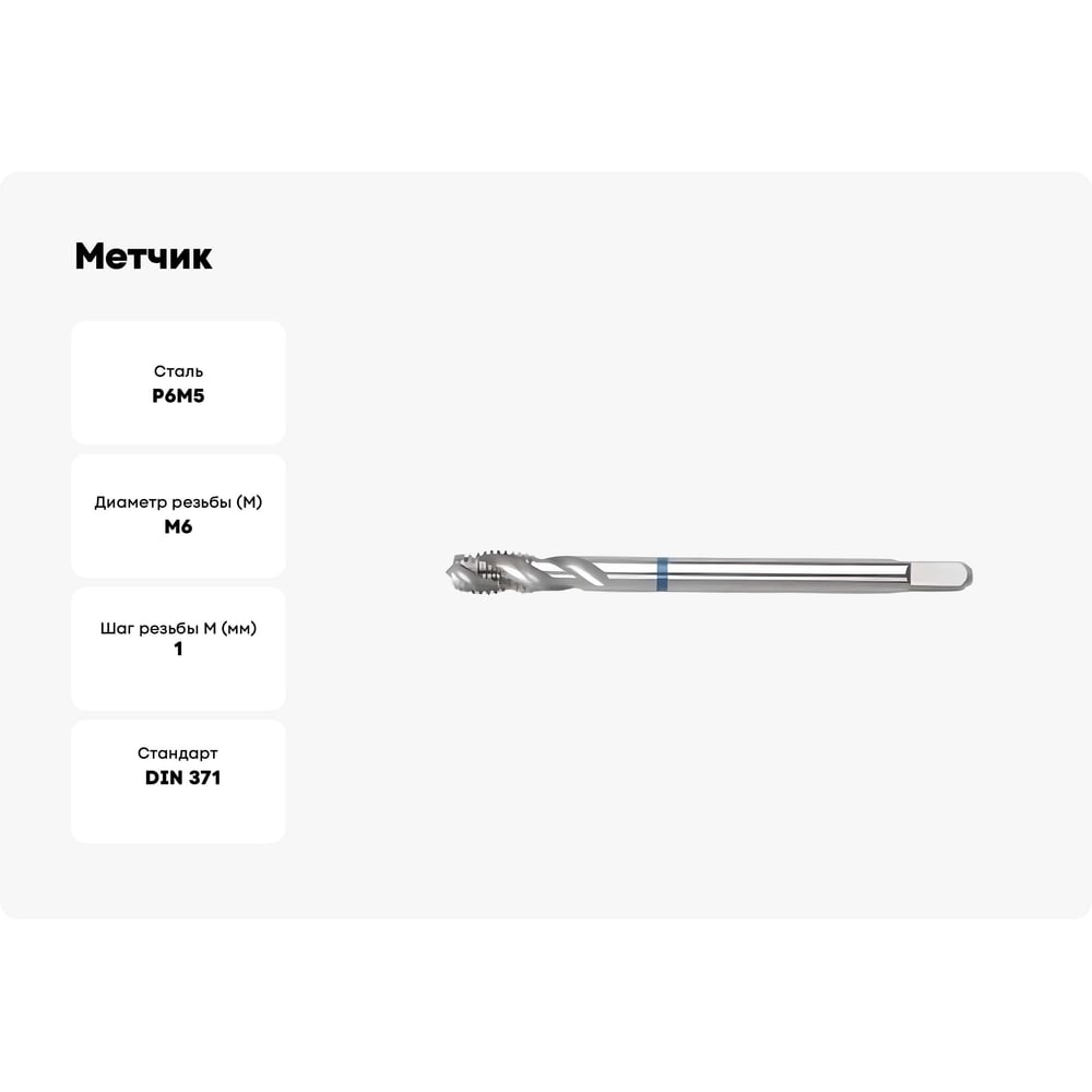 Метчик JSD М 6х1,0 DiN371 Р6М5 глух., винтовая канавка 1шт. 22685