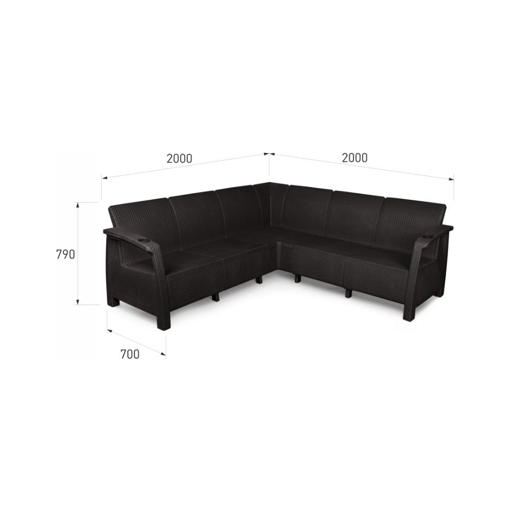 Угловой диван WORKY ротанг, 200x200x79 см, мокко, с черными подушками ARD257864