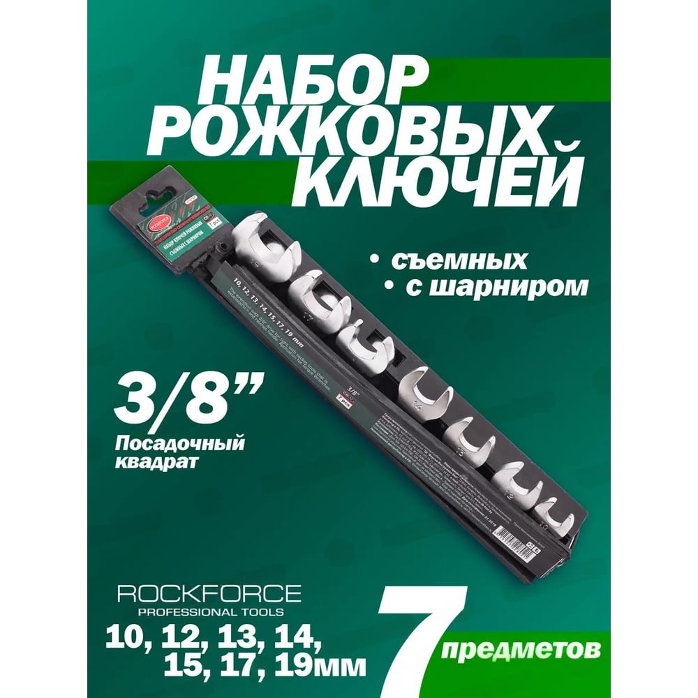 Набор ключей Rockforce рожковых съемных с шарниром 3/8 RF-51107AF(28717)