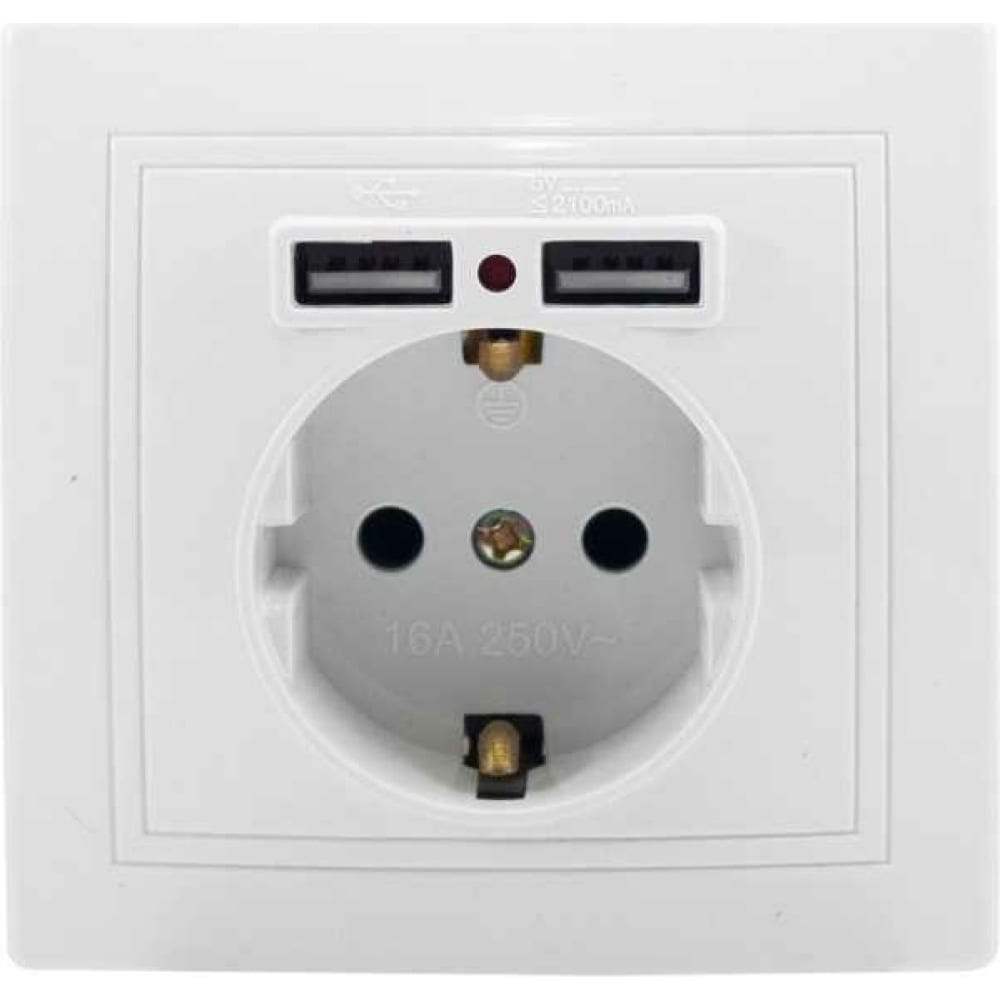 Розетка Jilion 1 гнездо с заземлением с USB, белый 9533166