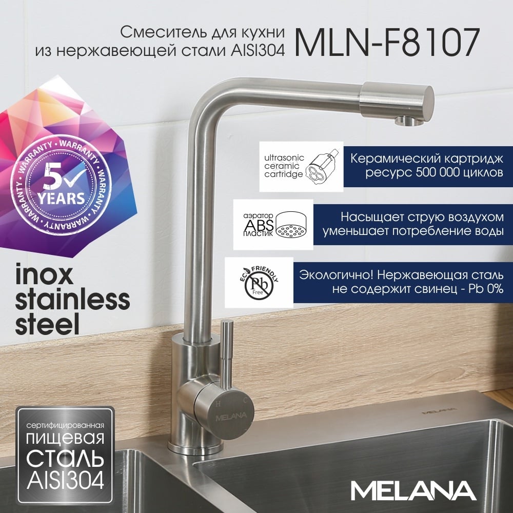 Смеситель для кухни MELANA нерж.сталь, однорычажный, сатин, высокий излив 8107