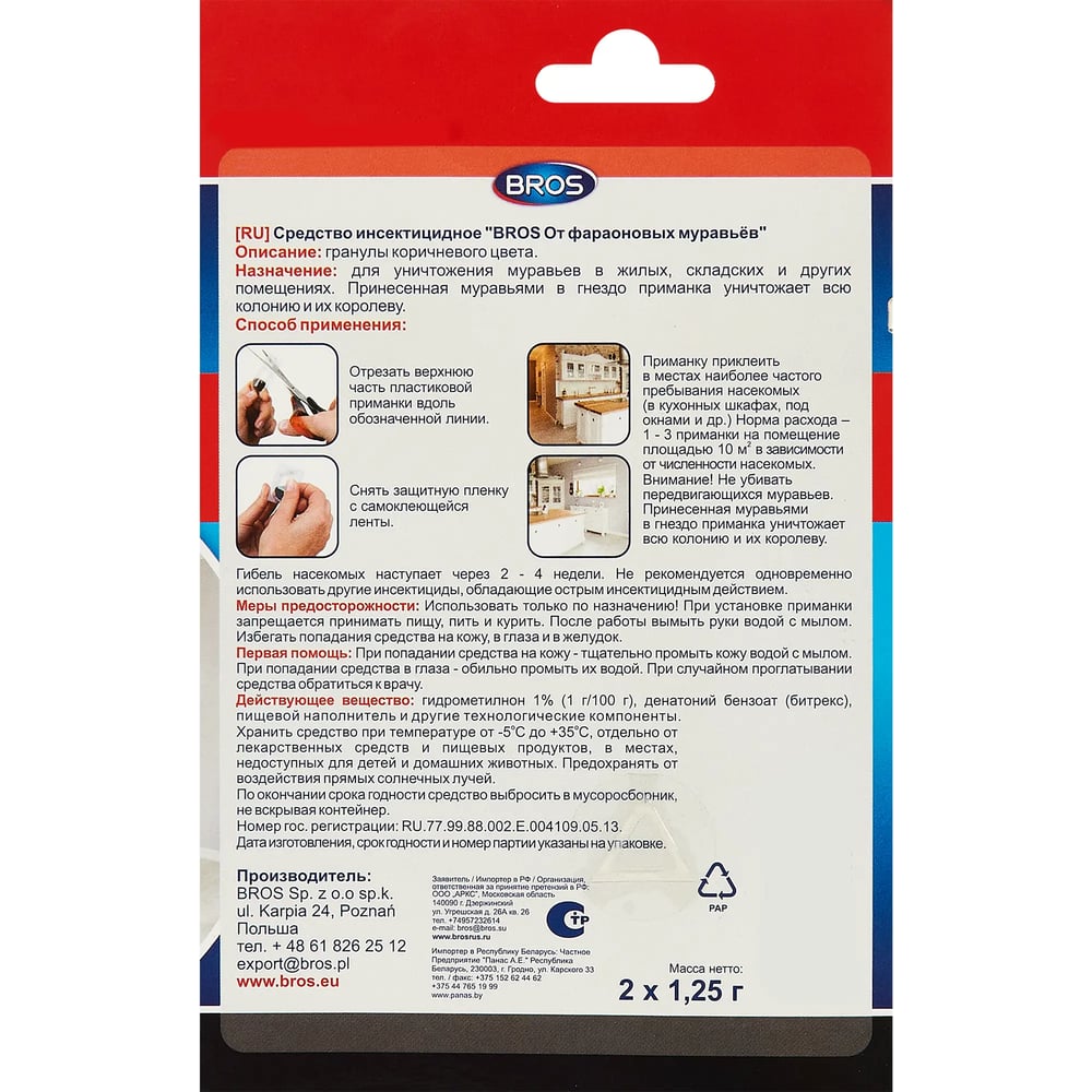 Приманка для уничтожения фараоновых муравьев BROS 2 штуки 706863