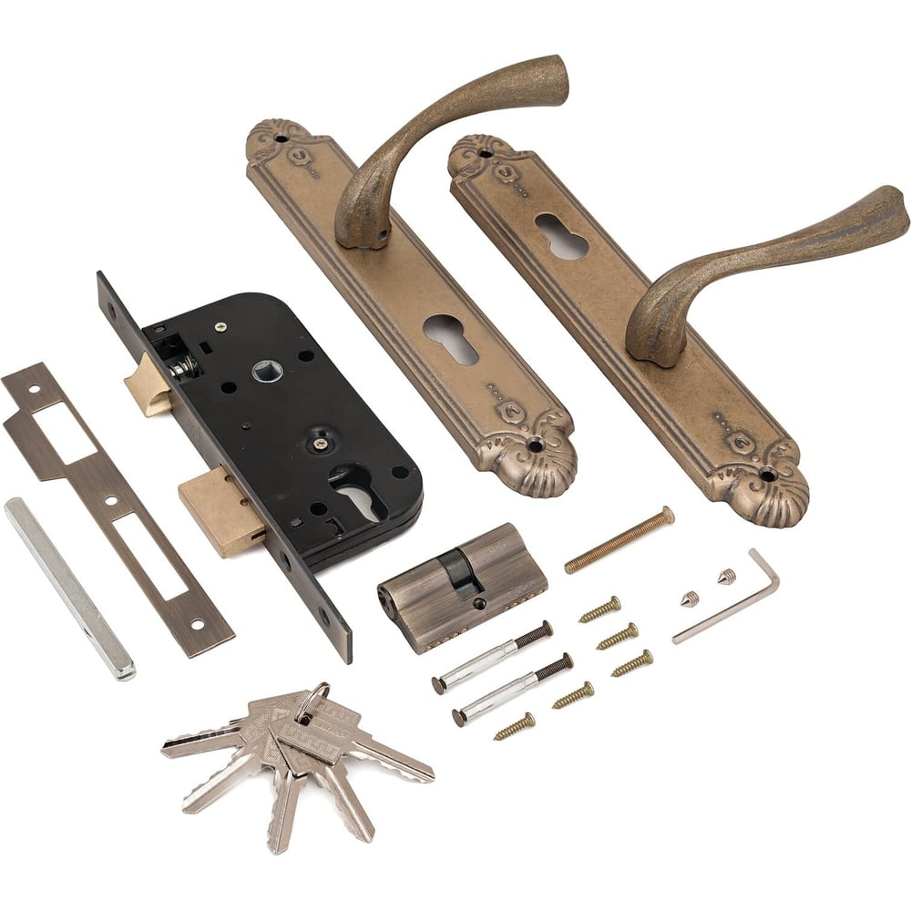 Врезной замок с ручками Аллюр ЗВ4-70.07 OB состаренная бронза 10174