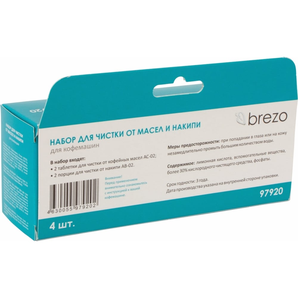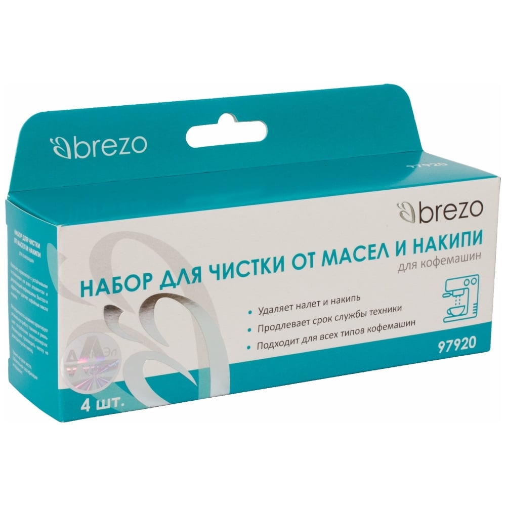 Набор для чистки кофемашин BREZO 2 таблетки для чистки от кофейных масел, 2 порции для чистки от накипи и известковых отложений 97920