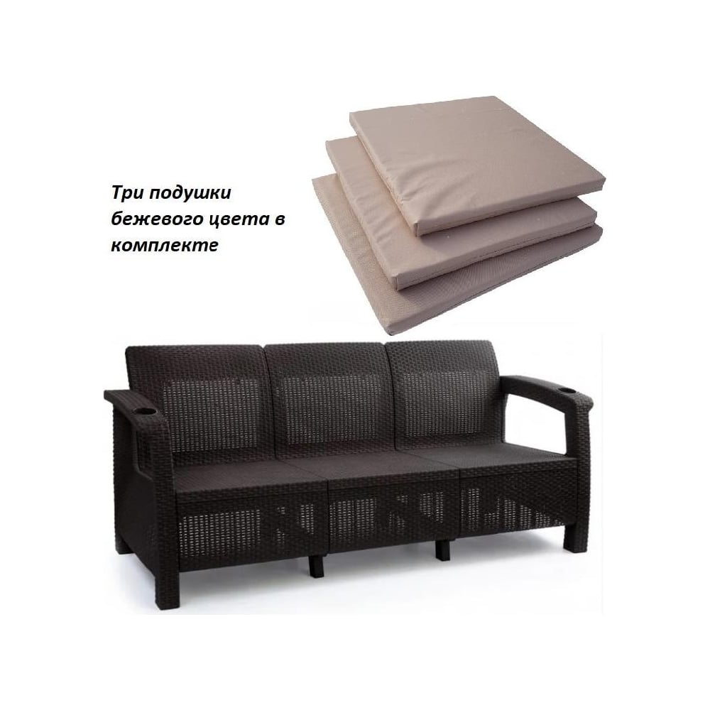 Диван WORKY ротанг, 3-х местный, 188x70x79 см, мокко, с бежевыми подушками ARD257815