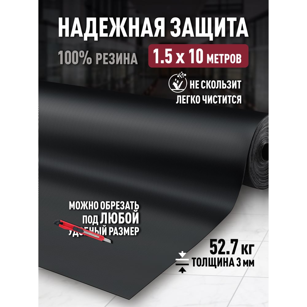 Резиновое рулонное покрытие ComeForte Рифленка 1,5х10 м Fine Ribbed rubber мелкая линия СС002790
