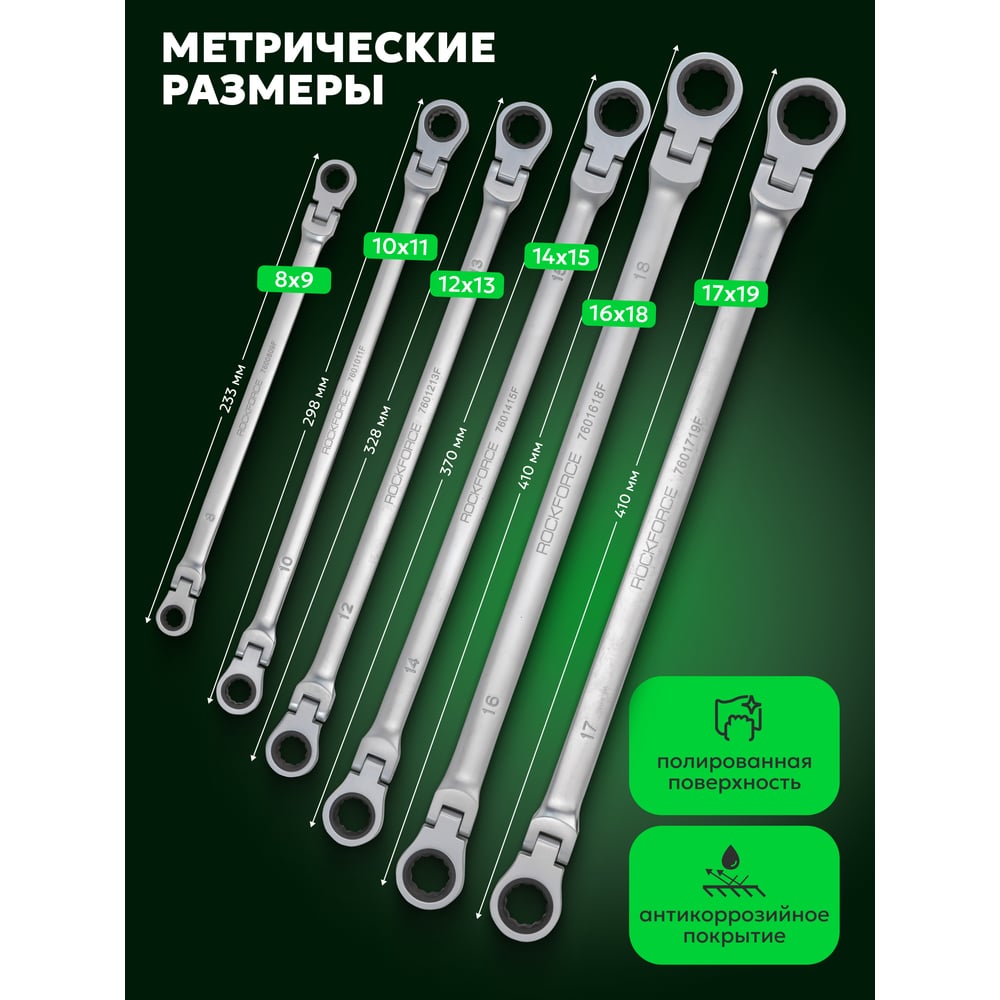 Набор накидных экстра длинных ключей Rockforce RF-50622F(54807)