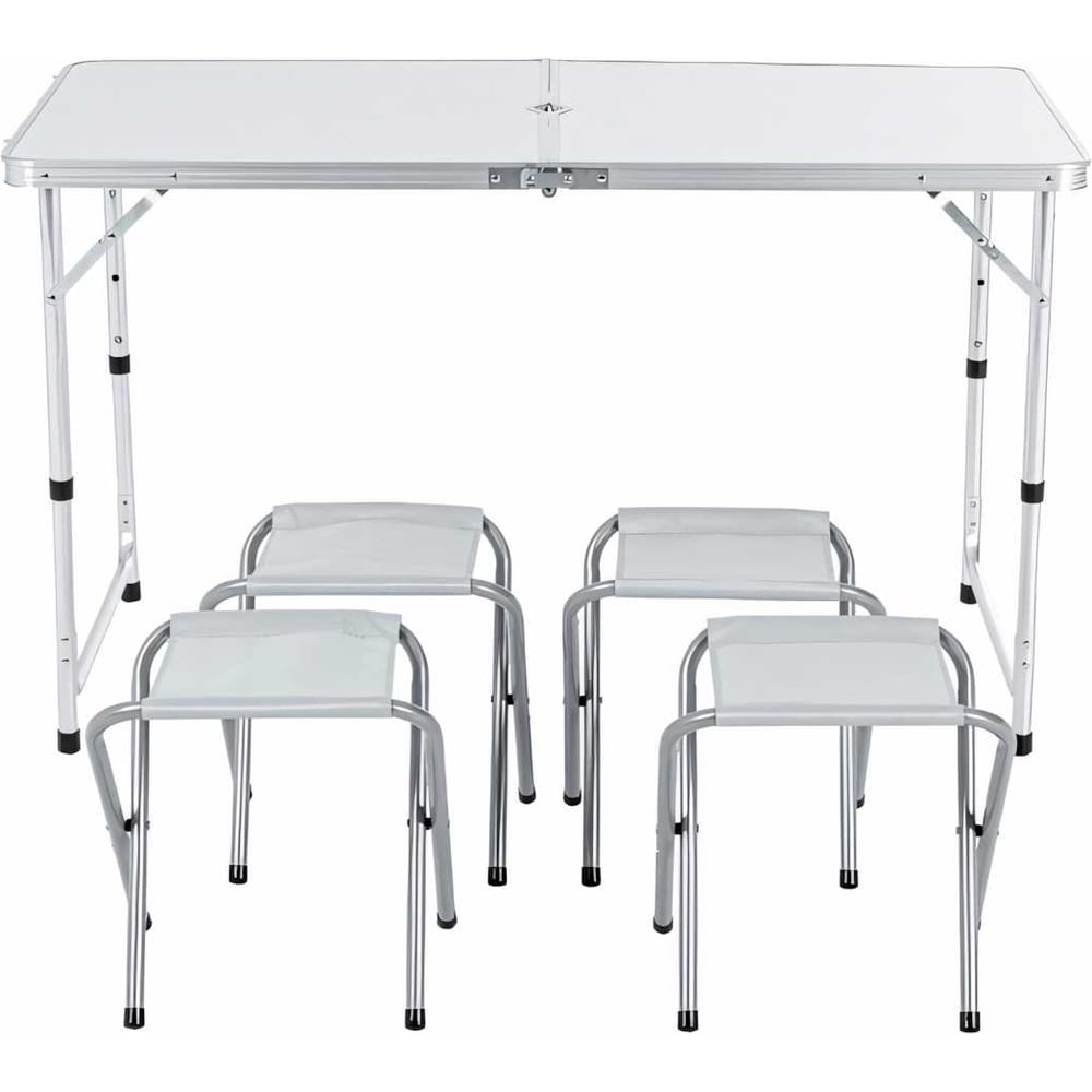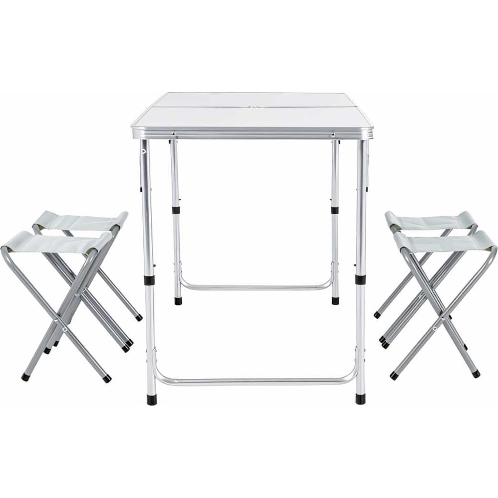 Цвет белый Вес нетто 6.15 кг Материал корпуса алюминий Количество предметов 5 шт Форма столешницы прямоугольник Материал столешницы МДФ Материал сиденья полиэстер Высота стола 700 мм Max нагрузка на стол 30 кг Габариты в разложенном виде 1200x600x700x610x540 мм Стол-чемодан да Состав комплекта стол, стулья Max нагрузка на стул 80 кг