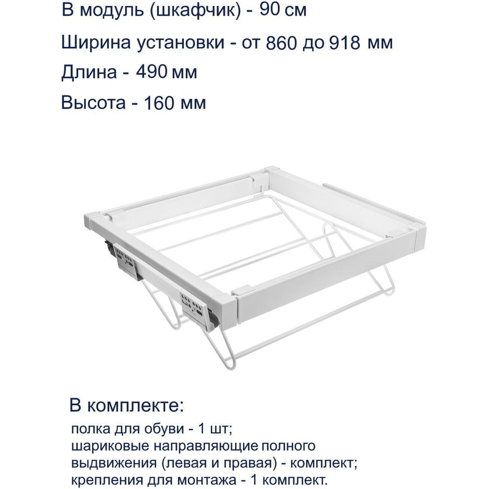 Полка для обуви GTV белая, в модуль 900 мм WG-POBUW90-10