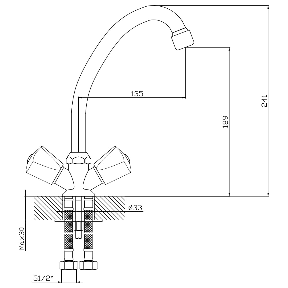 | Диаметр отверстия в раковине | 33 мм |
