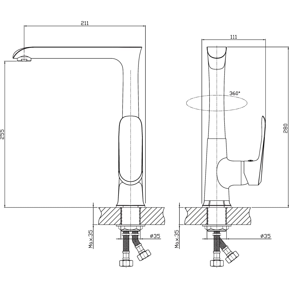 Смеситель для кухни RUSH Gozo высокий, с поворотным изливом, хром GZ3735-23