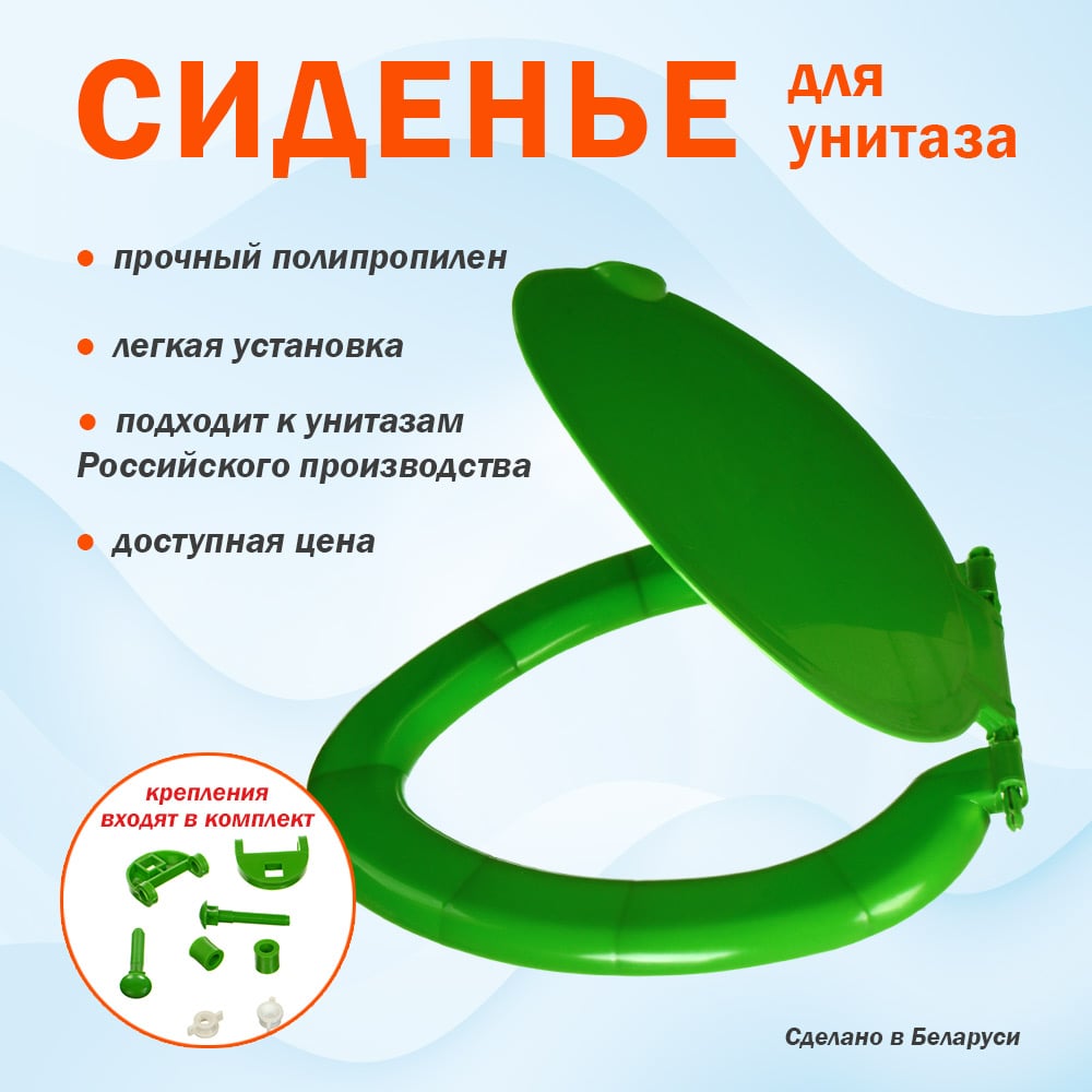 Высота 40 мм Материал полипропилен Ширина 400 мм Цвет зеленый Тип сиденье+крышка для унитаза Форма овальная Глубина 370 мм Функция биде нет Наличие микролифта нет Детское сиденье нет Мягкое сиденье нет Электронное управление нет