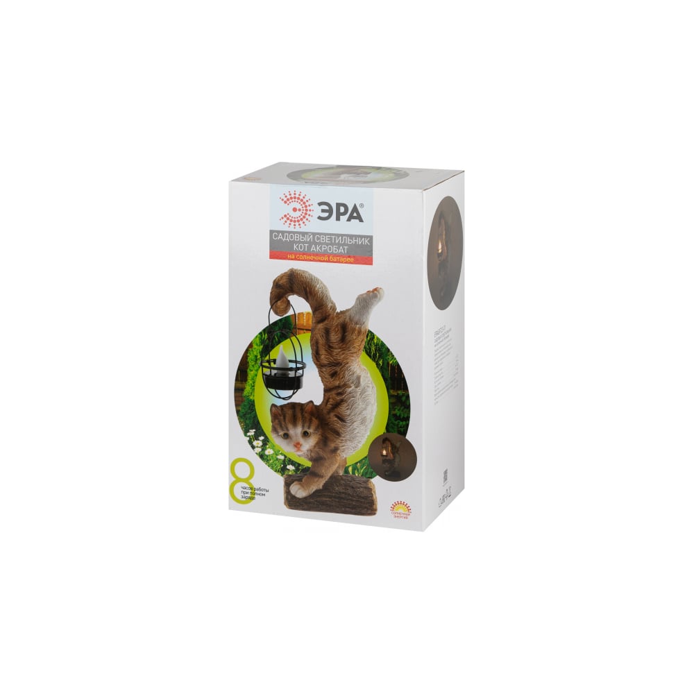 Садовый светильник ЭРА ERASF22-01Кот Акробат, на солнечной батарее, полистоун, 37 см, Б0053352