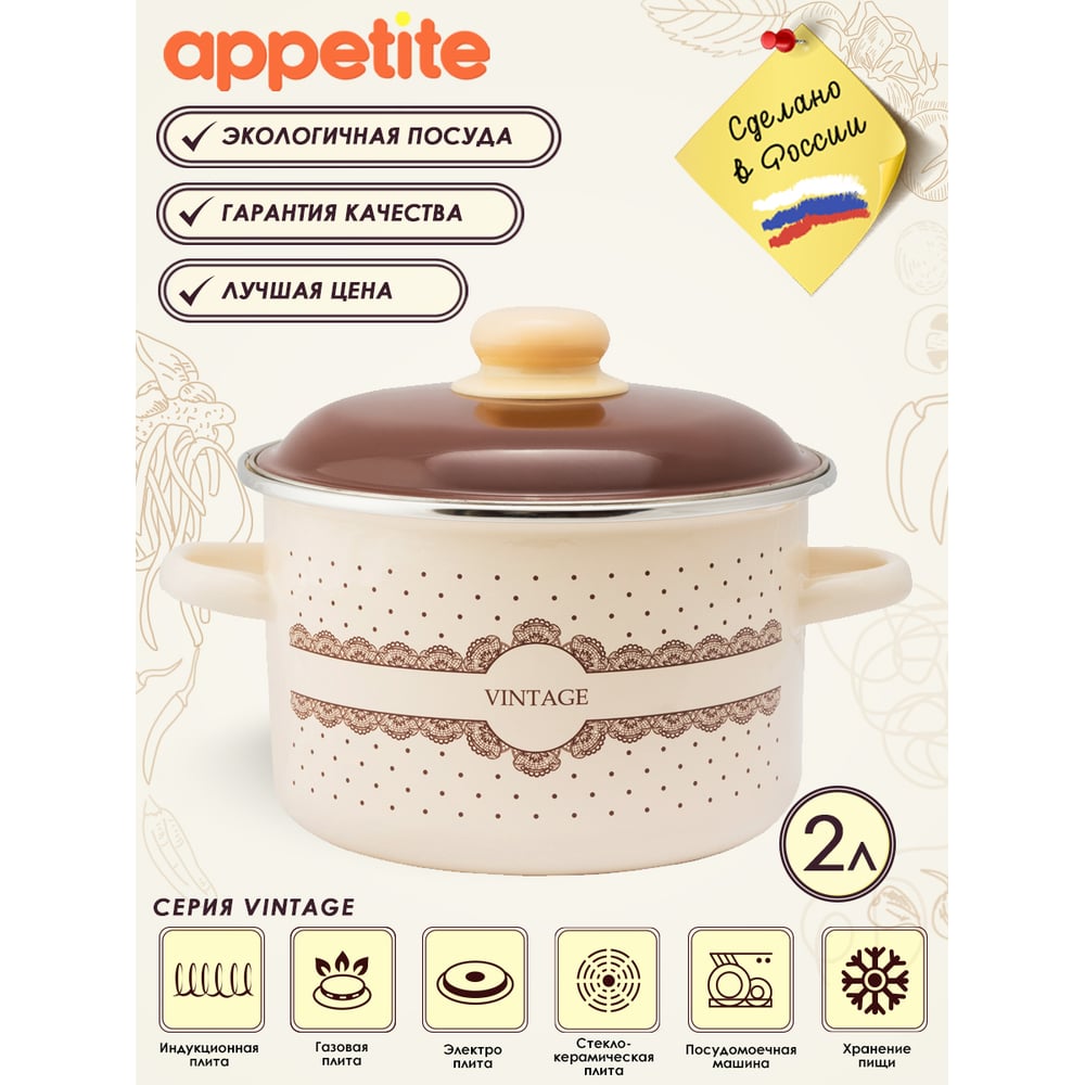 Цилиндрическая эмалированная кастрюля appetite Vintage 2 л 6RD161M Vintage
