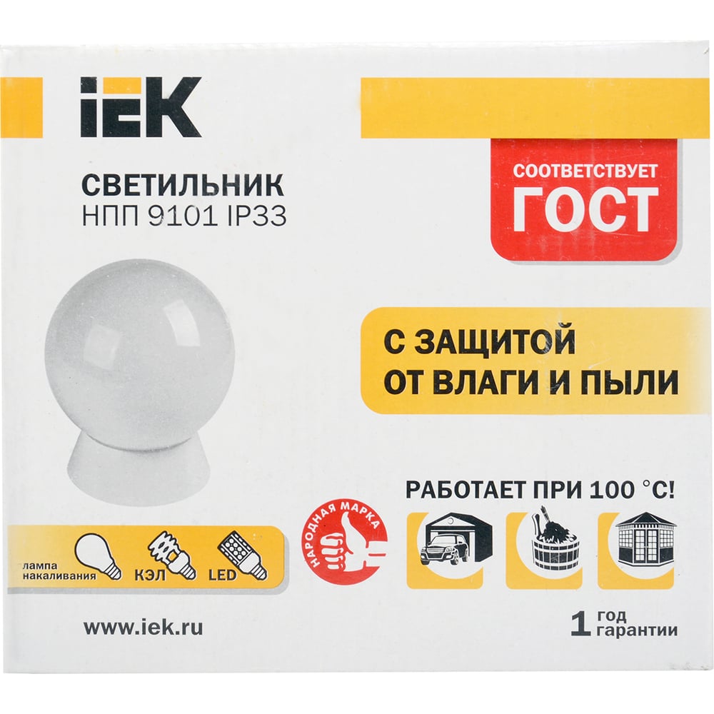 Светильник IEK НПП-60w, шар, молочный, основание, пластик, IP33, IEK LNPP0-9101-1-060-K01
