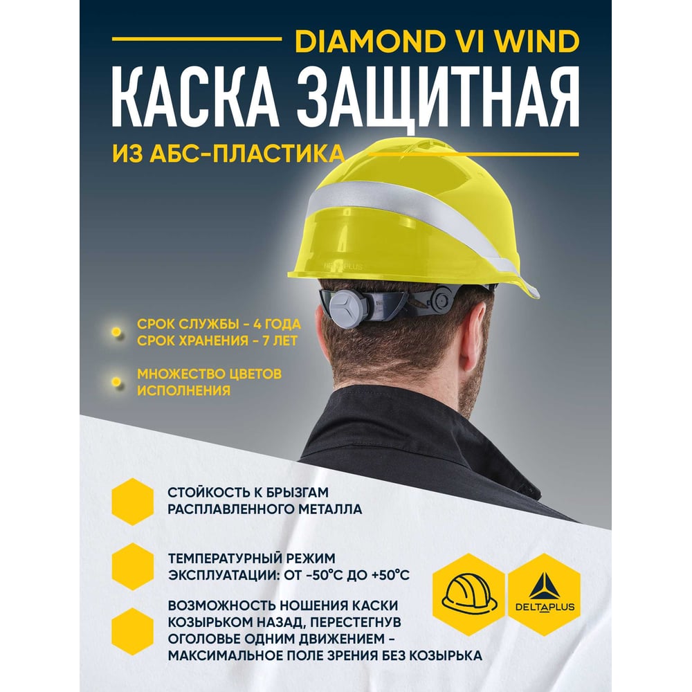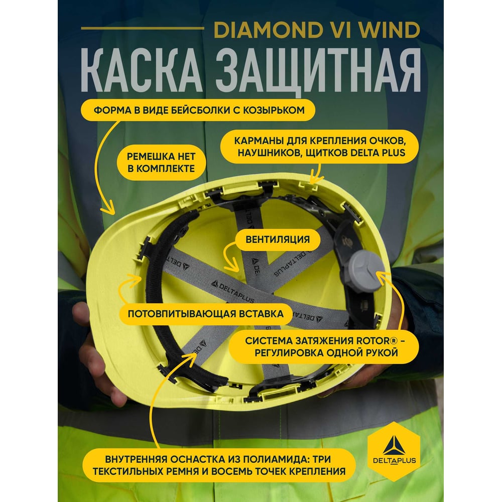 Защитная каска Delta Plus DIAMOND VI WIND из ABC с вентиляцией, лимонная DIAM6WTRJAFL